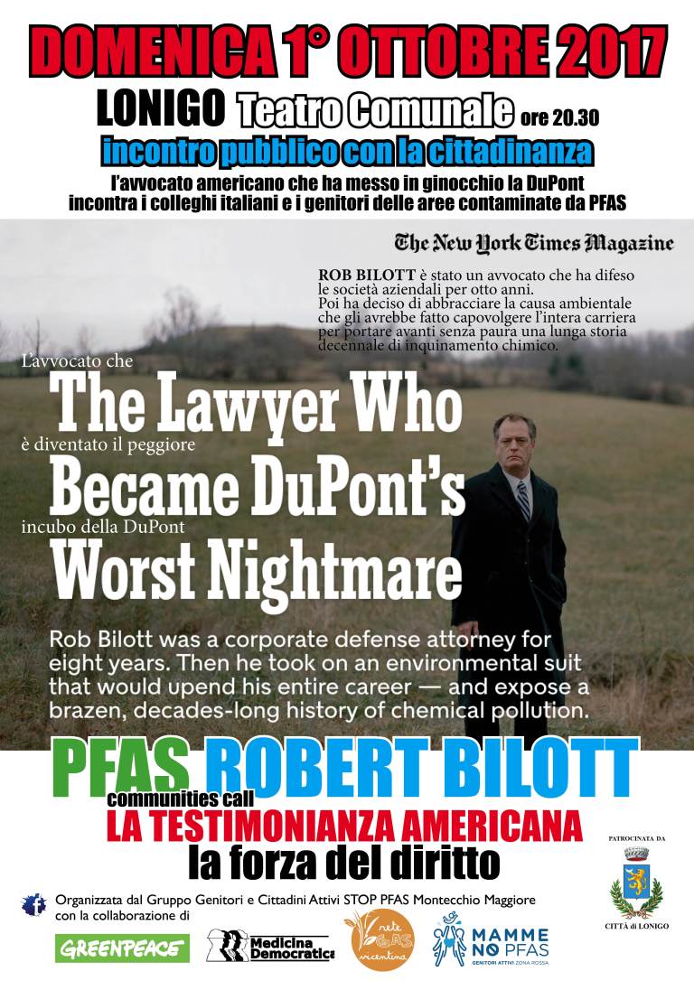 Siamo supportati dalla redazione di PFAS.land, organo di informazione dei gruppi-comitati-associazioni NO PFAS della Regione del Veneto, che, in modo autonomo, procede culturalmente nell’azione di informazione, sensibilizzazione della cittadinanza e dei nostri giovani. Accade, quindi, di assistere stupiti al realizzarsi di un’operazione culturale interessante. Anzi, stupefacente. Parliamo di The Devil We Know, un documentario americano che ci tocca da vicino per quanto riguarda la tematica affrontata, i Pfas. Dopo aver acquistato la licenza e fissato i diritti di traduzione, Pfas.land, il 7 giugno, organizzerà una anteprima a Vicenza – una specie di assemblea popolare del Movimento dove attivisti, studenti e cittadini si incontreranno – proiettando il suddetto film con sottotitoli in italiano, grazie al lavoro intensissimo di ragazzi del Boscardin, altra scuola in cui siamo “penetrati”, guidati dalla prof.ssa Stefania Romio. A seguire, le scuole potranno richiederlo gratuitamente per l’anno scolastico 2019/2020, secondo un programma di proiezione diffusa concordato con la produzione.