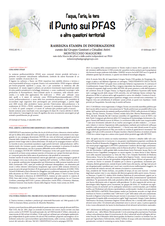 Accogliamo, lusingati, quanto ci ha scritto il 4 aprile 2019, il prof. Vittorio Riezzo, responsabile progetto Pfas all’ITAS Trentin di Lonigo, la prima scuola dove abbiamo iniziato la nostra avventura didattica e in cui abbiamo effettuato il più alto numero di corsi e di assemblee di istituto, là dove i moduli/test predisposti da noi sono stati richiesti dalla stessa scuola per l’effettuazione di una indagine generale su tutti gli studenti frequentanti e i loro genitori, là dove l’UDA (Unità di Apprendimento) sui Pfas è stata già completata (altre scuole a maggio) e la pagina specifica del sito scolastico è stata aggiornata anche con il materiale offerto dai nostri esperti: