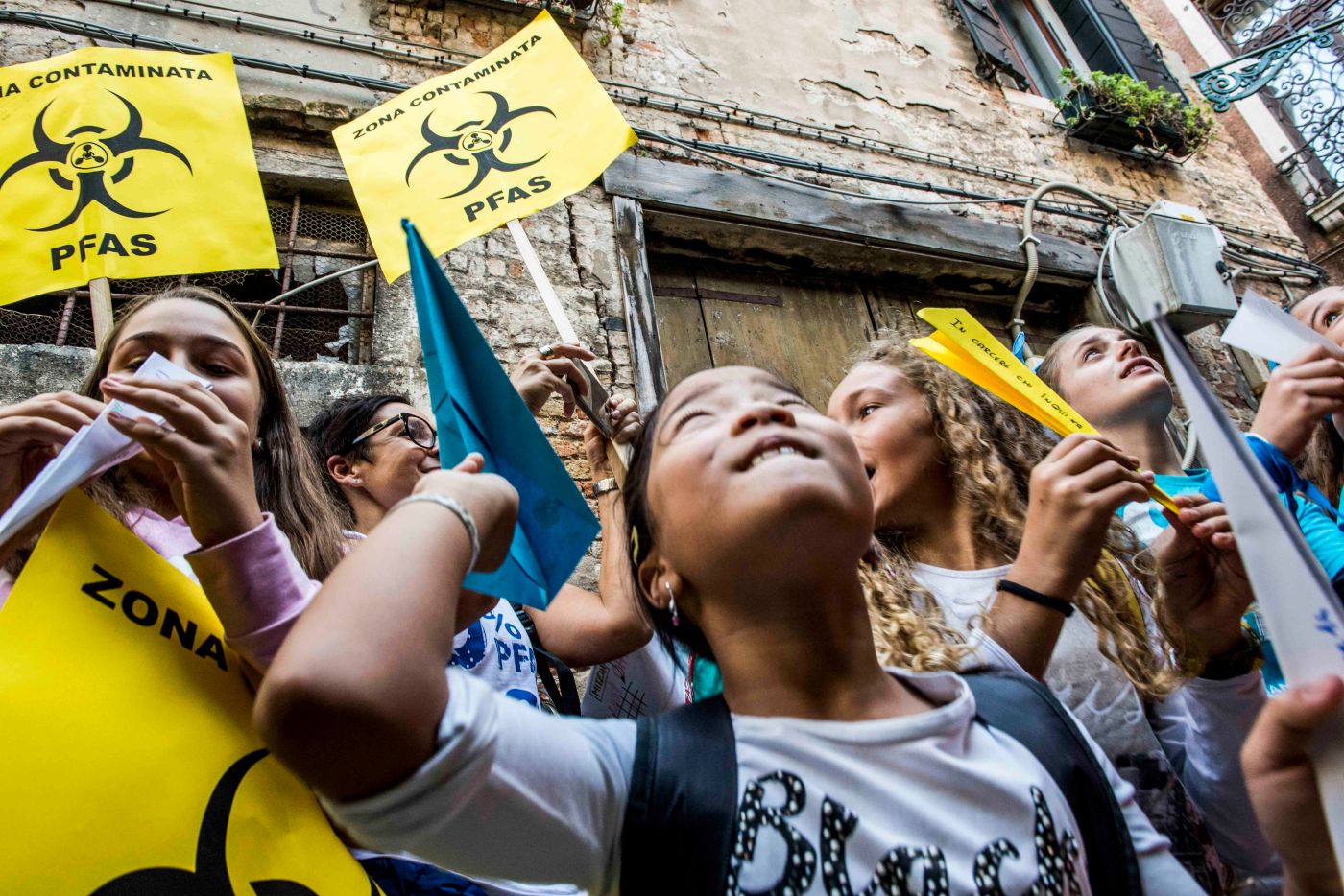 Sul banco degli imputati i Pfas: un disastro ambientale di tre province del Veneto e i relativi rischi per la salute della popolazione, soprattutto dei nostri figli.