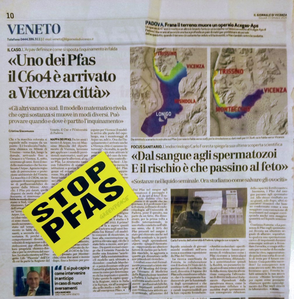 Ha sorpreso tutti – esperti e non esperti di PFAS – il titolone del quotidiano locale sul “tracciamento” dei nuovi Pfas – nuovi solo per chi misconosce la loro storia – e soprattutto quello che si legge all’interno dell’articolo, tanto che ha indotto i nostri esperti di idraulica e geologia a scrivere una lettera di chiarimento, che riportiamo sotto, inviata al Giornale il 24 ottobre.
