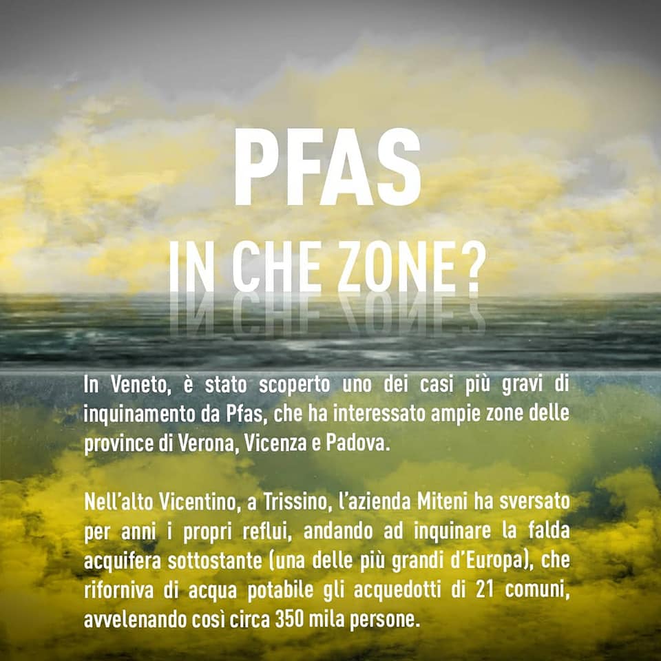 - che, in quanto tali, siano esenti da PFAS e altre sostanze pericolose. Purtroppo l’armadietto sotto il lavello di ogni abitazione contiene un arsenale di veleni che vengono regolarmente sversati in fognatura. Inoltre è notorio che la stessa fine seguono i rifiuti delle lavanderie, considerati rifiuti ad altissima presenza di Pfas. Anche le feci, prodotto di scarto degli esseri umani, contengono una certa quantità di PFAS grazie all’alimentazione, ricca di alimenti contaminati da PFAS, prodotti nelle zone sovrastanti le falde inquinate e messi liberamente in commercio nella nostra regione senza alcun controllo. Pertanto, anche i depuratori “esclusivamente” civili, molto pochi in verità, non sono affatto esenti da PFAS e da altri prodotti tossici.