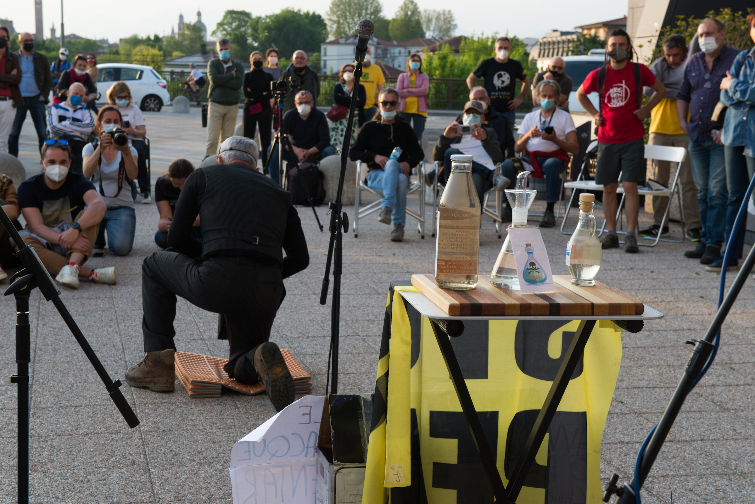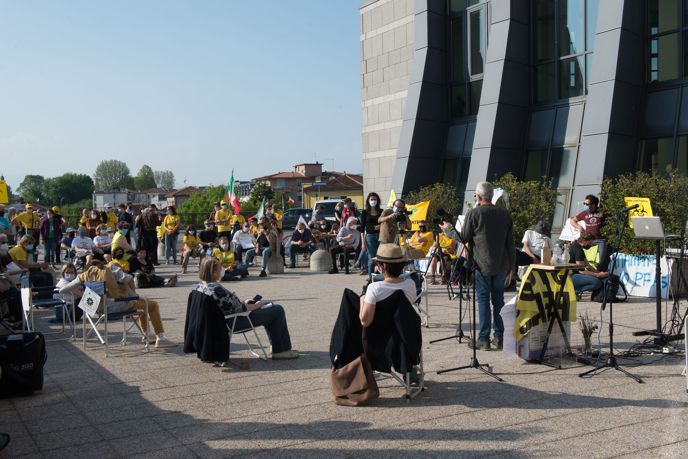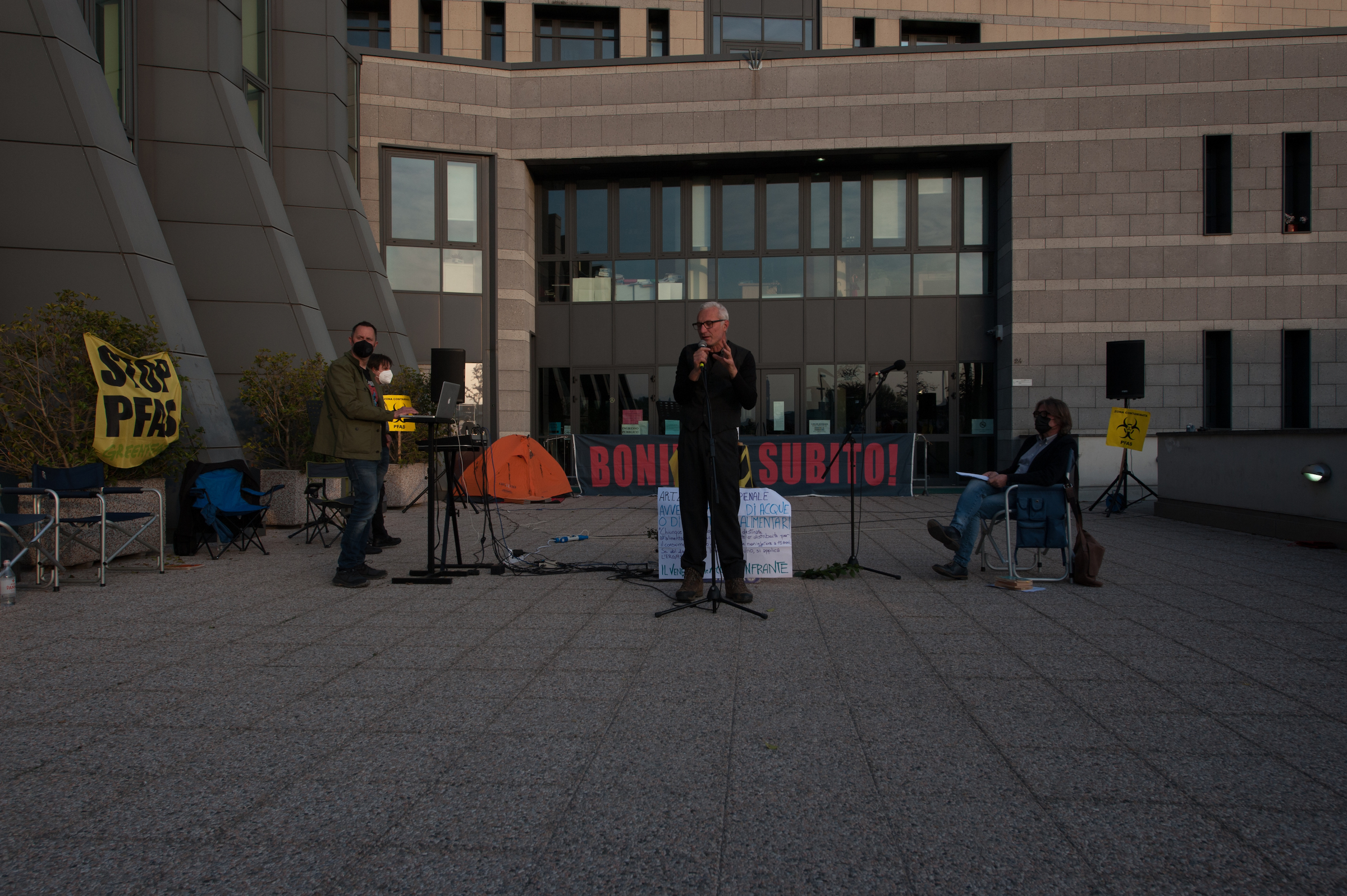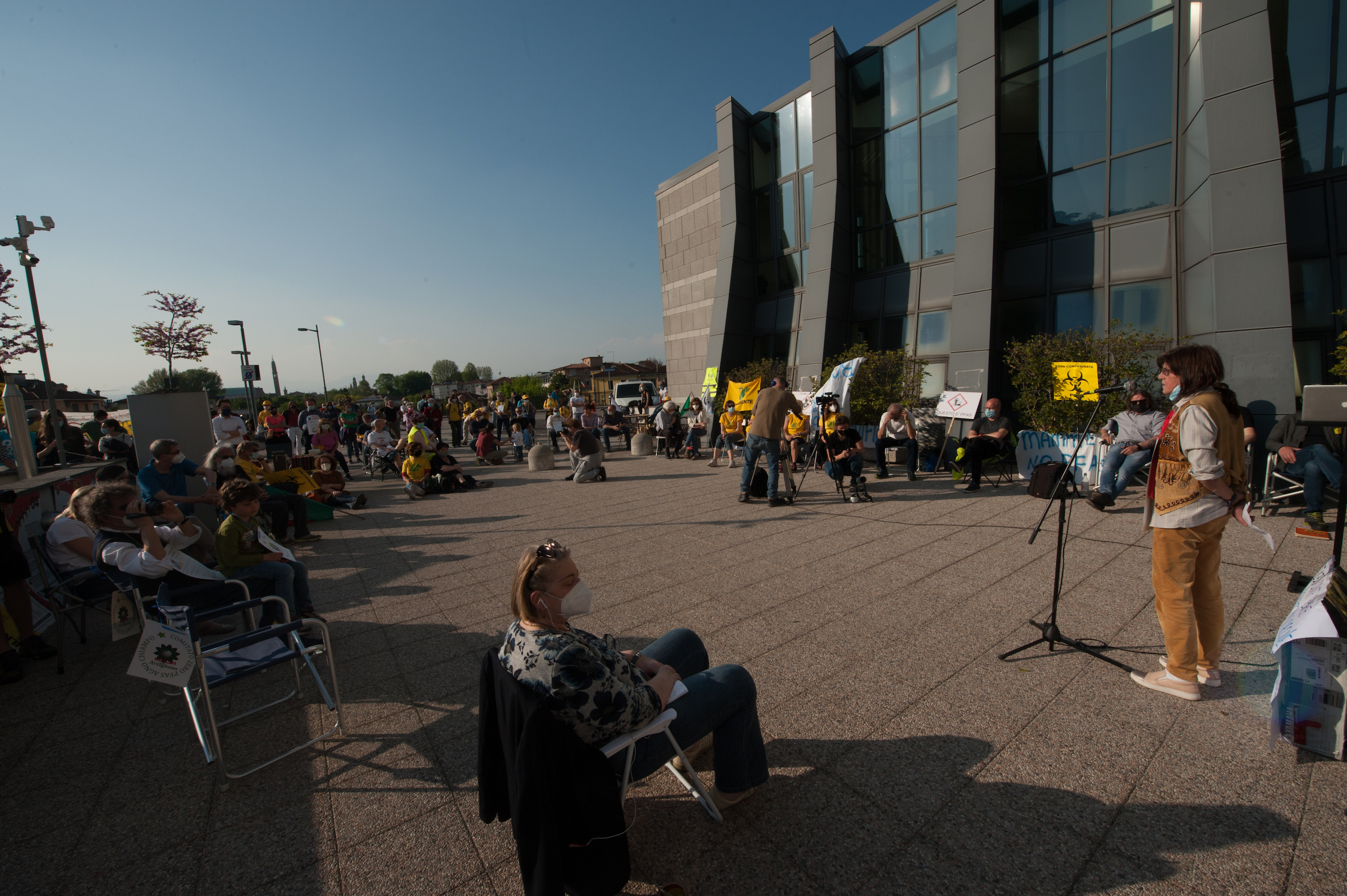 Tra gli oratori del 25 aprile, Alberto Peruffo (PFAS.land), Marzia Albiero (Retegas Vicentina – PFAS.land), Michela Piccoli e Eleonora Foletto (Mamme No Pfas), Piergiorgio Boscagin (Legambiente – Perla Blu), Giovanni Fazio (Cillsa – PFAS.land), Maria Chiara Rodeghiero (Medicina Democratica), Donata Albiero (Cillsa – PFAS.land), Elisabetta Donadello (Retegas Vicentina – PFAS.land), Claudio Lupo e Francesco Bertola (ISDE – PFAS.land), Edoardo Bortolotto (avvocato PFAS.land – COLMI – Medicina Democratica), Enrico Varali (avvocato Legambiente – Retegas vicentina), Matteo Ceruti (avvocato Mamme No Pfas), Mattia Donadel (No inceneritore Fusina), Francesco Pavin (Caracol Olol Jackson – Rise Up 4 Climate Justice), Danilo Del Bello (Zero Pfas Padova), Dario Zampieri e Davide Sandini (PFAS.land), Giampaolo Zanni (CGIL Vicenza), Alessia Mambrin (Greenpeace), Michela Sericano (Legambiente Alessandria).