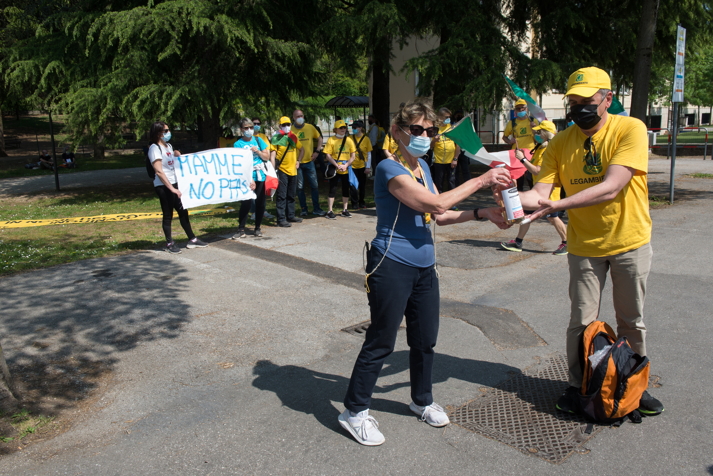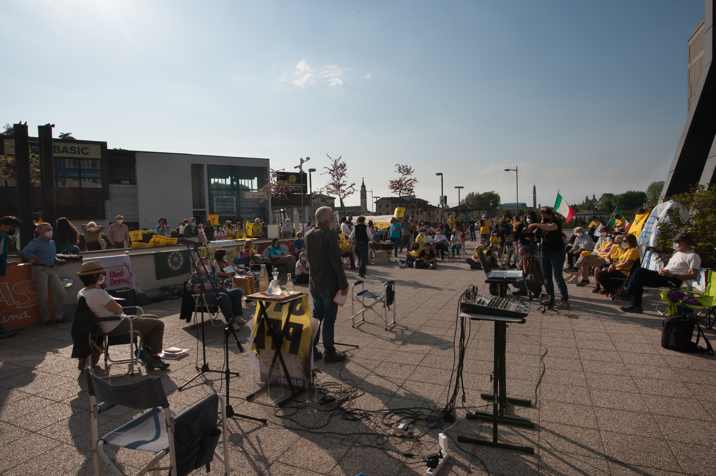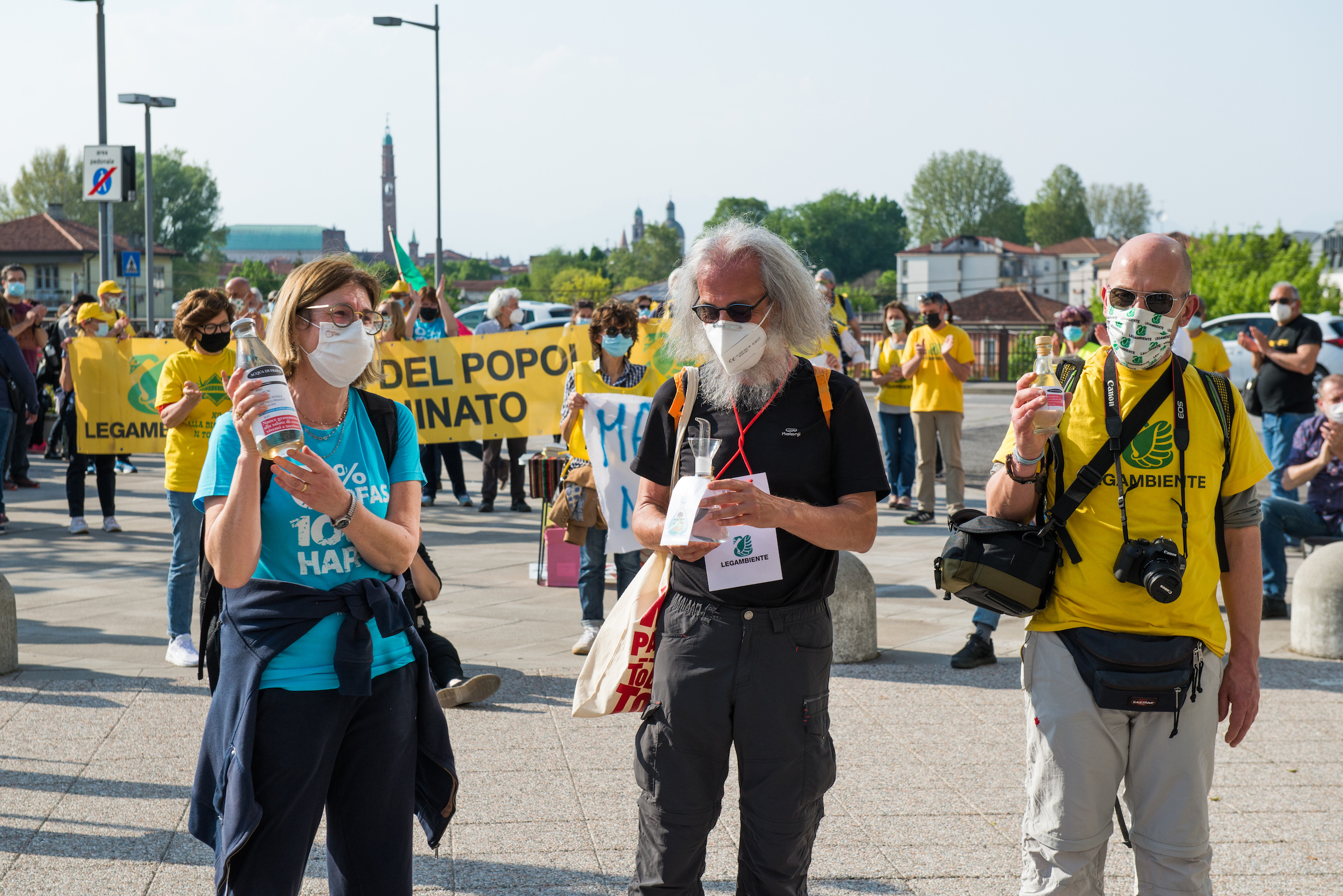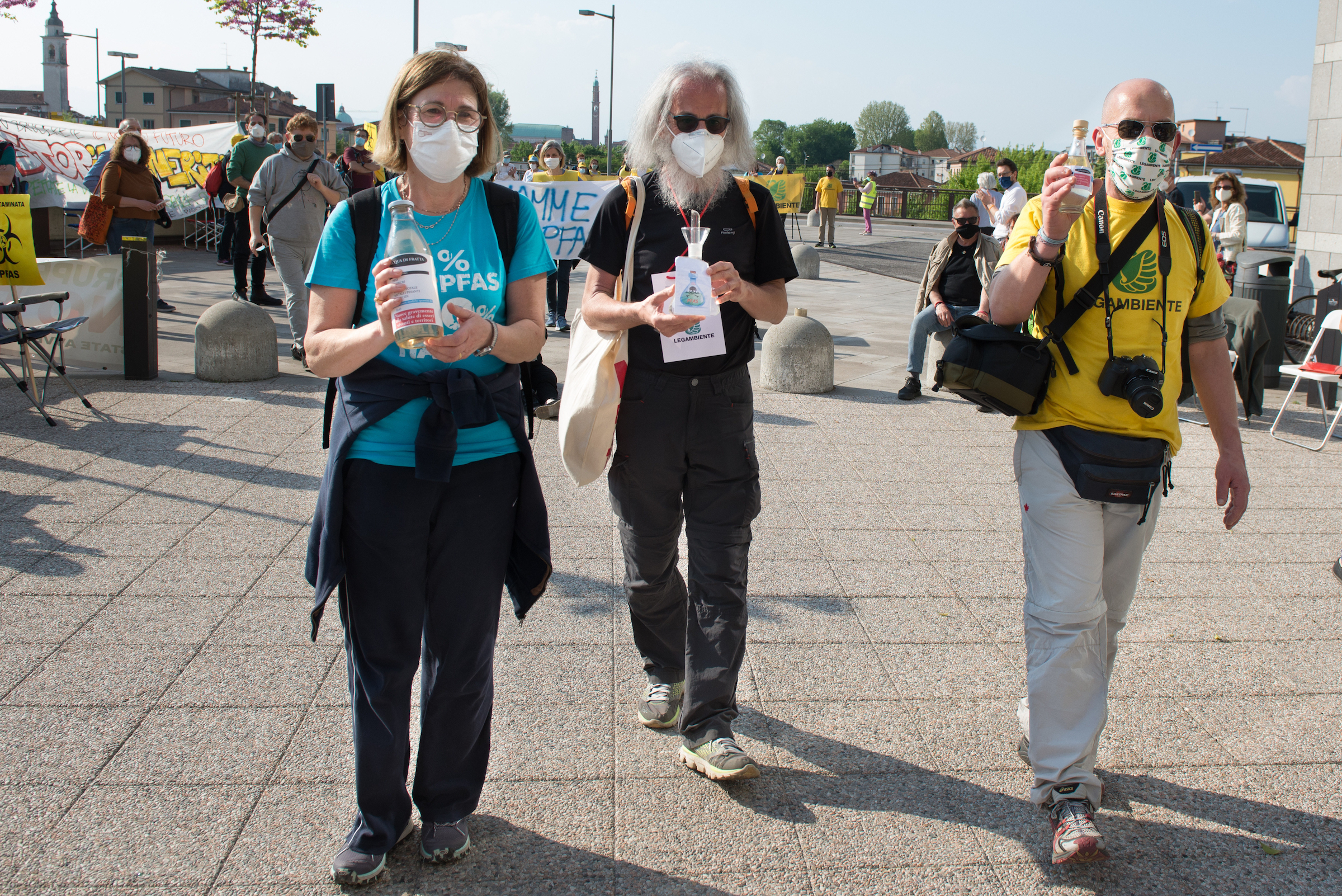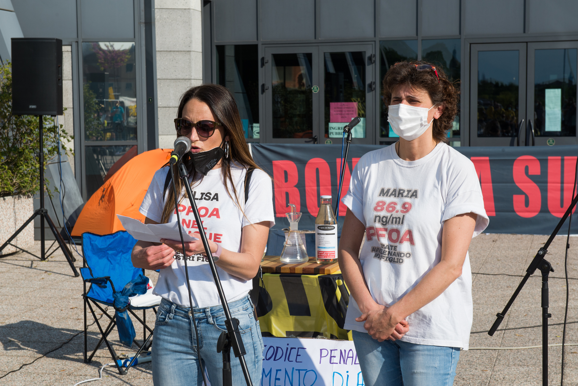 Tra gli oratori del 25 aprile, Alberto Peruffo (PFAS.land), Marzia Albiero (Retegas Vicentina – PFAS.land), Michela Piccoli e Eleonora Foletto (Mamme No Pfas), Piergiorgio Boscagin (Legambiente – Perla Blu), Giovanni Fazio (Cillsa – PFAS.land), Maria Chiara Rodeghiero (Medicina Democratica), Donata Albiero (Cillsa – PFAS.land), Elisabetta Donadello (Retegas Vicentina – PFAS.land), Claudio Lupo e Francesco Bertola (ISDE – PFAS.land), Edoardo Bortolotto (avvocato PFAS.land – COLMI – Medicina Democratica), Enrico Varali (avvocato Legambiente – Retegas vicentina), Matteo Ceruti (avvocato Mamme No Pfas), Mattia Donadel (No inceneritore Fusina), Francesco Pavin (Caracol Olol Jackson – Rise Up 4 Climate Justice), Danilo Del Bello (Zero Pfas Padova), Dario Zampieri e Davide Sandini (PFAS.land), Giampaolo Zanni (CGIL Vicenza), Alessia Mambrin (Greenpeace), Michela Sericano (Legambiente Alessandria).