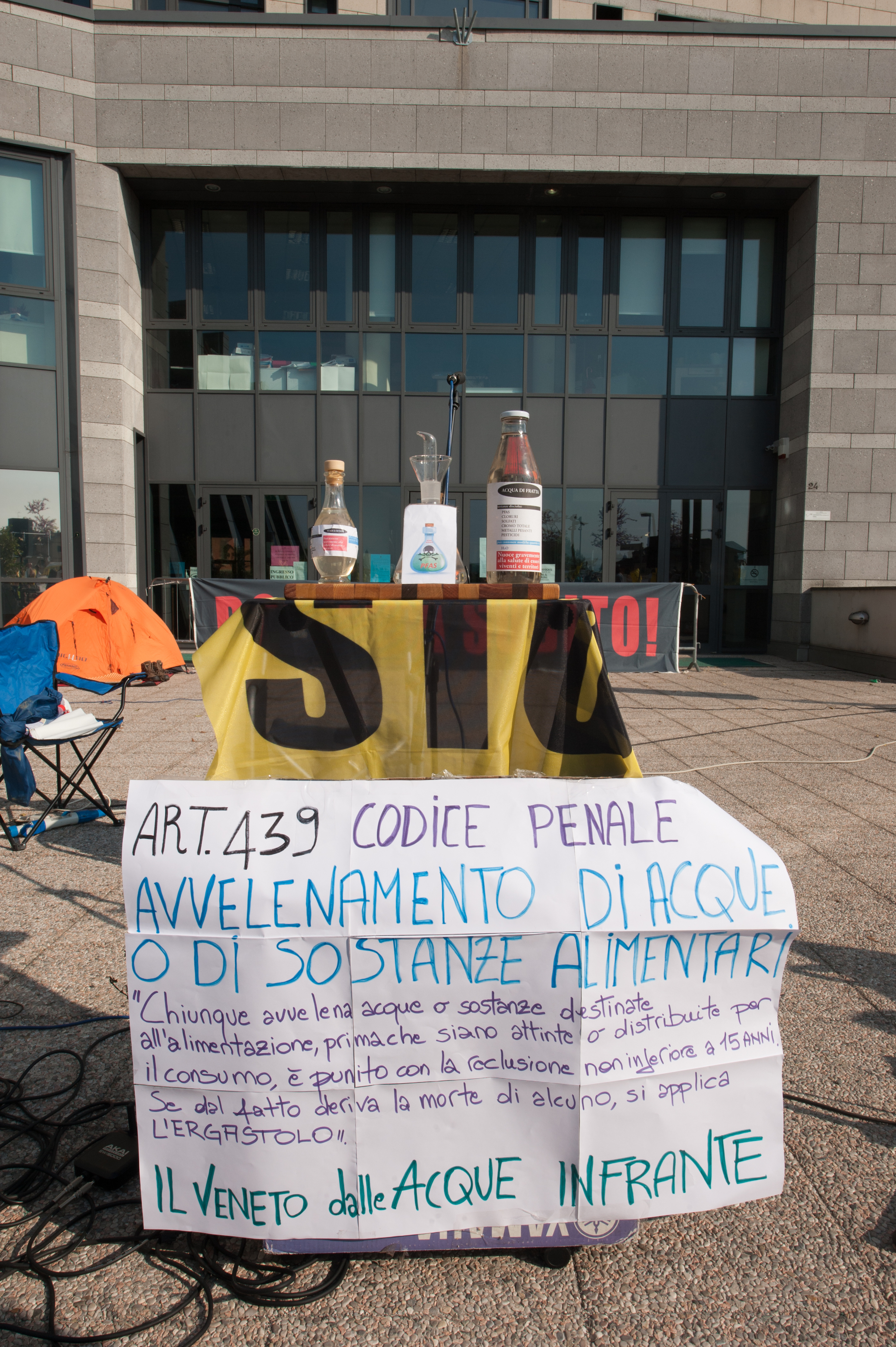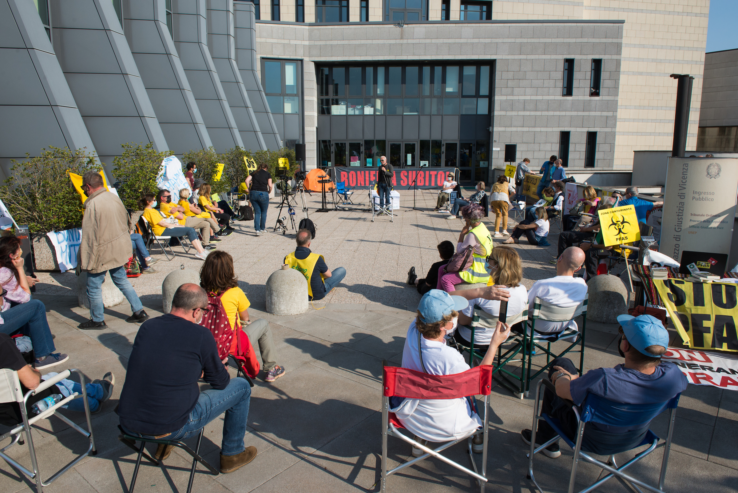 Seguono i documenti video fotografici / sottolineature / approfondimenti della due giorni PFAS BASE CAMP organizzata da tutte le forze del movimento No Pfas, allargato ad istanze territoriali connesse – «attraversare i territori, unire le lotte» – per dare forza e contenuti all’ultima udienza preliminare del Procedimento Miteni, conclusasi con lo storico rinvio a giudizio di tutti gli imputati per tutti i capi d’accusa ad opera del giudice Roberto Venditti e dei PM Barbara De Munari e Hans Roderich Blattner. La prima udienza dibattimentale in Corte d’Assise con giudici popolari è prevista per il 1° luglio.