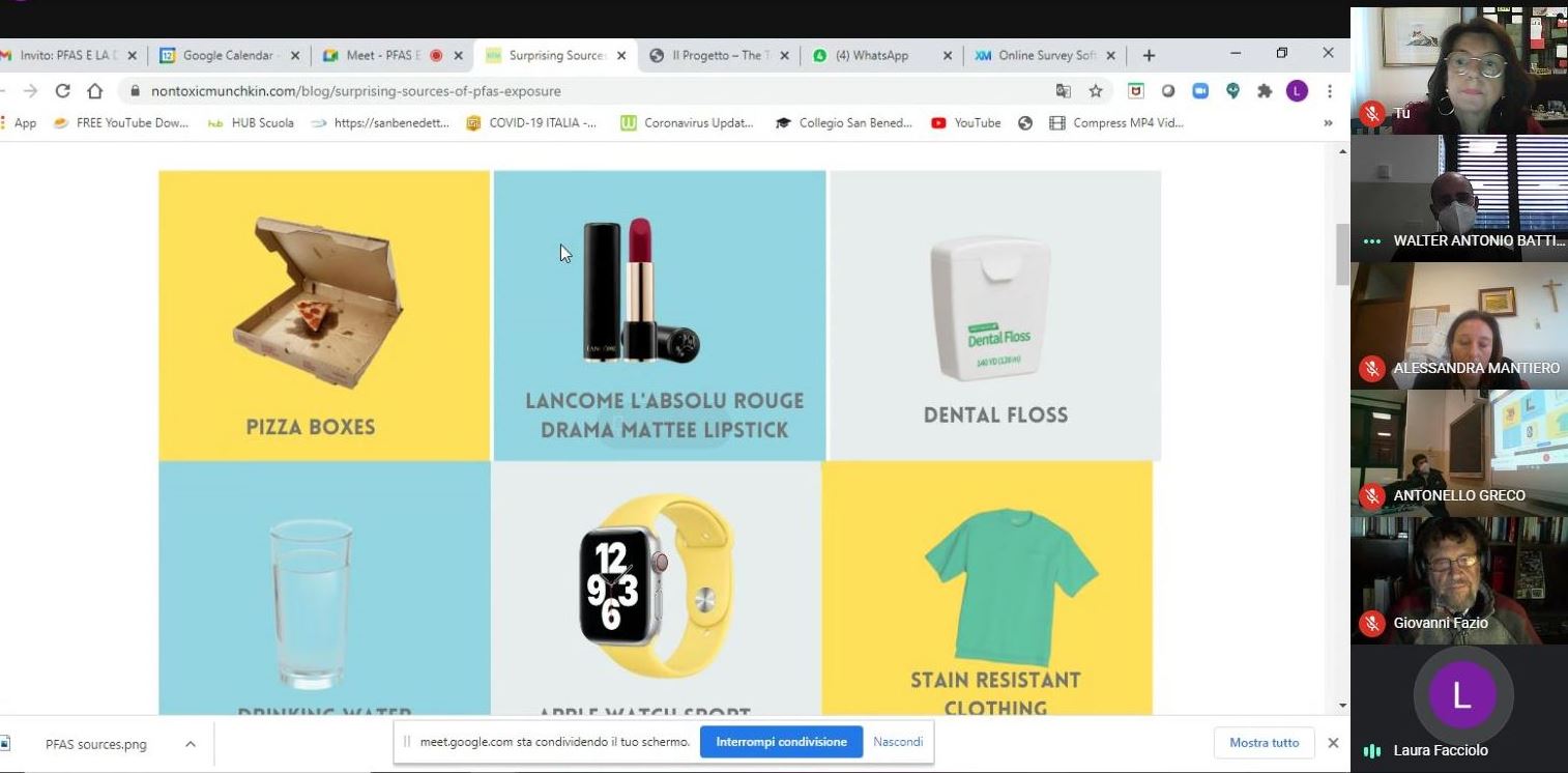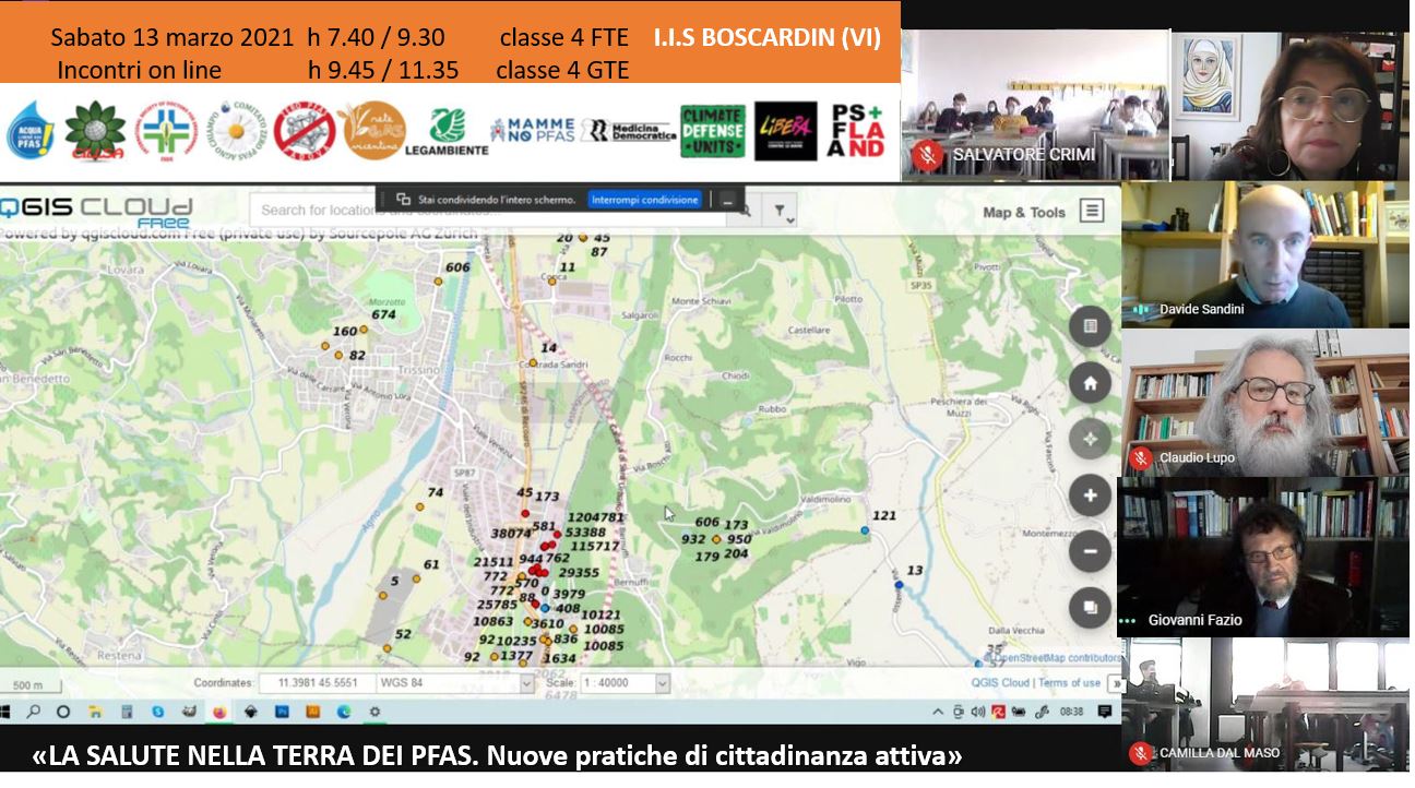 Purtroppo, l’inizio del nuovo anno scolastico ha segnato un ennesimo stop: settembre, ottobre, novembre, dicembre 2020, in condizioni di estremo disagio comunicativo, determinato dalla sindemia Covid 19, sono stati, per tutti noi, mesi da dimenticare. Ci siamo riattivati a gennaio 2021. In una situazione condizionata dall’emergenza, le richieste di scuole per “brevi pillole on line sui Pfas”, nulla a che vedere con il nostro progetto, ci destavano parecchi interrogativi in merito alla loro efficacia. Dovevamo decidere se “prendere o lasciare”; abbiamo scelto la prima opzione, accettando di operare in DAD, accogliendo le esigenze delle scuole e modificando tempi, obiettivi, metodologia e passaggi operativi.