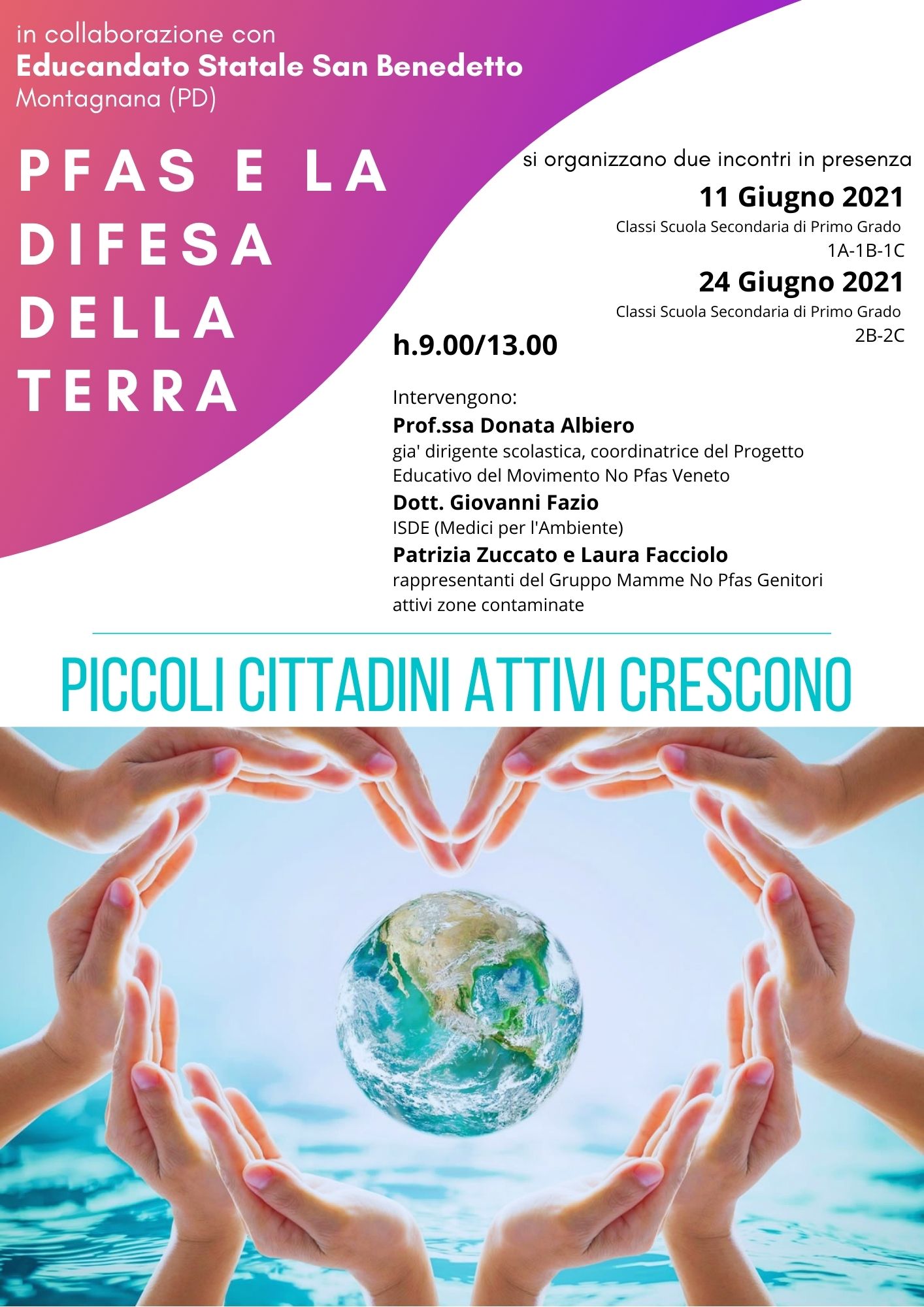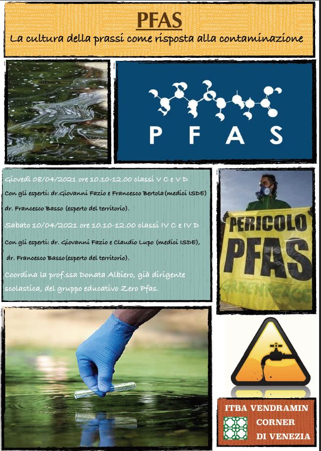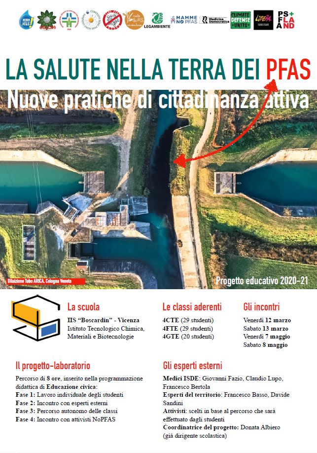 Si è concluso, positivamente, anche per l’anno scolastico 2020/2021, il ciclo di incontri con scuole del Veneto. Il mandato, ricevuto dal Movimento No Pfas, continua ad essere portato avanti dagli esperti e cittadini attivi incaricati, appartenenti a vari gruppi e comitati: 12 sono i loghi in calce al progetto educativo sui Pfas presentato alle istituzioni scolastiche.