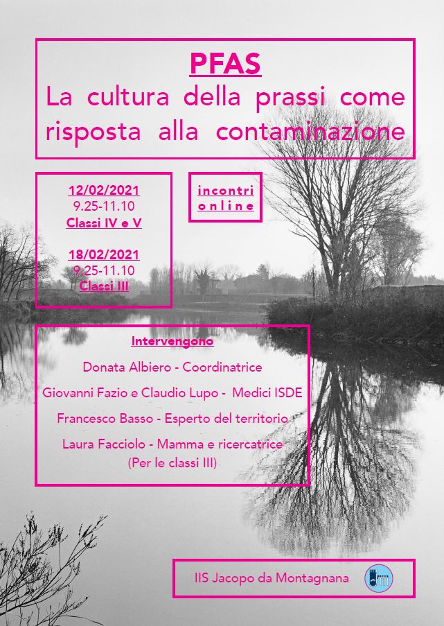 Nelle scuole secondarie di secondo grado, il titolo dato a tutti i momenti di riflessione collettiva “Pfas. La cultura della prassi come risposta alla contaminazione” indicava di per sé la direzione e il target del nostro itinerario.