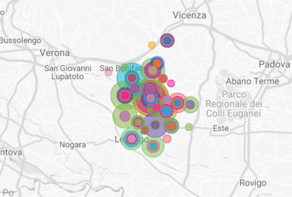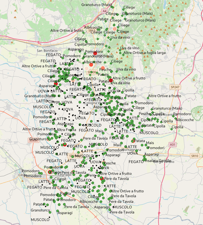 - non è segnalato se le coordinate indicate siano quelle dell’azienda agricola, o l’effettivo punto di coltivazione del vegetale o di allevamento dell’animale; non solo, in alcune analisi ci sono discrepanze tra le coordinate, che stiamo verificando;