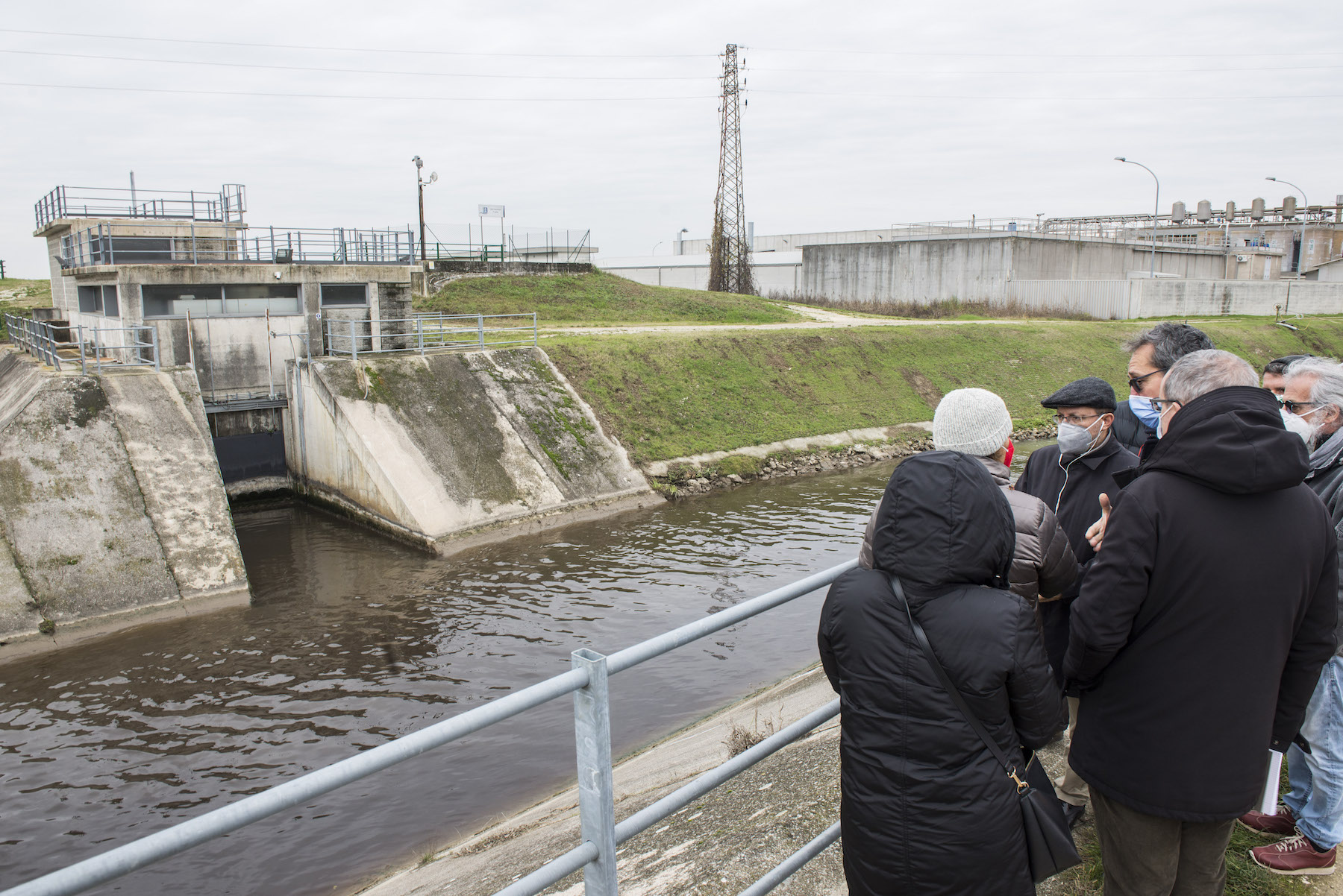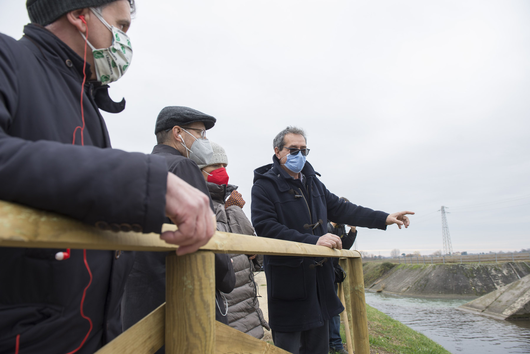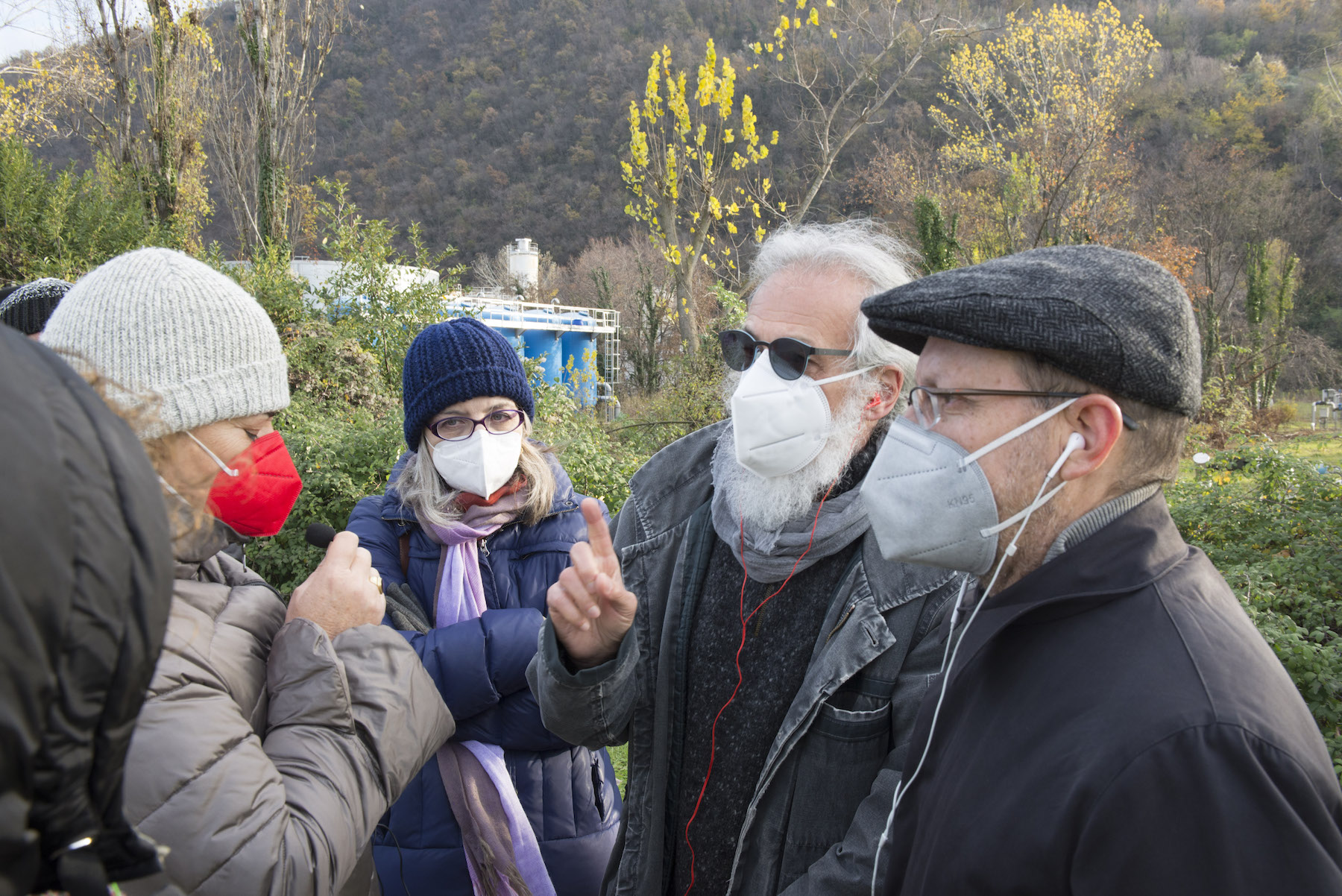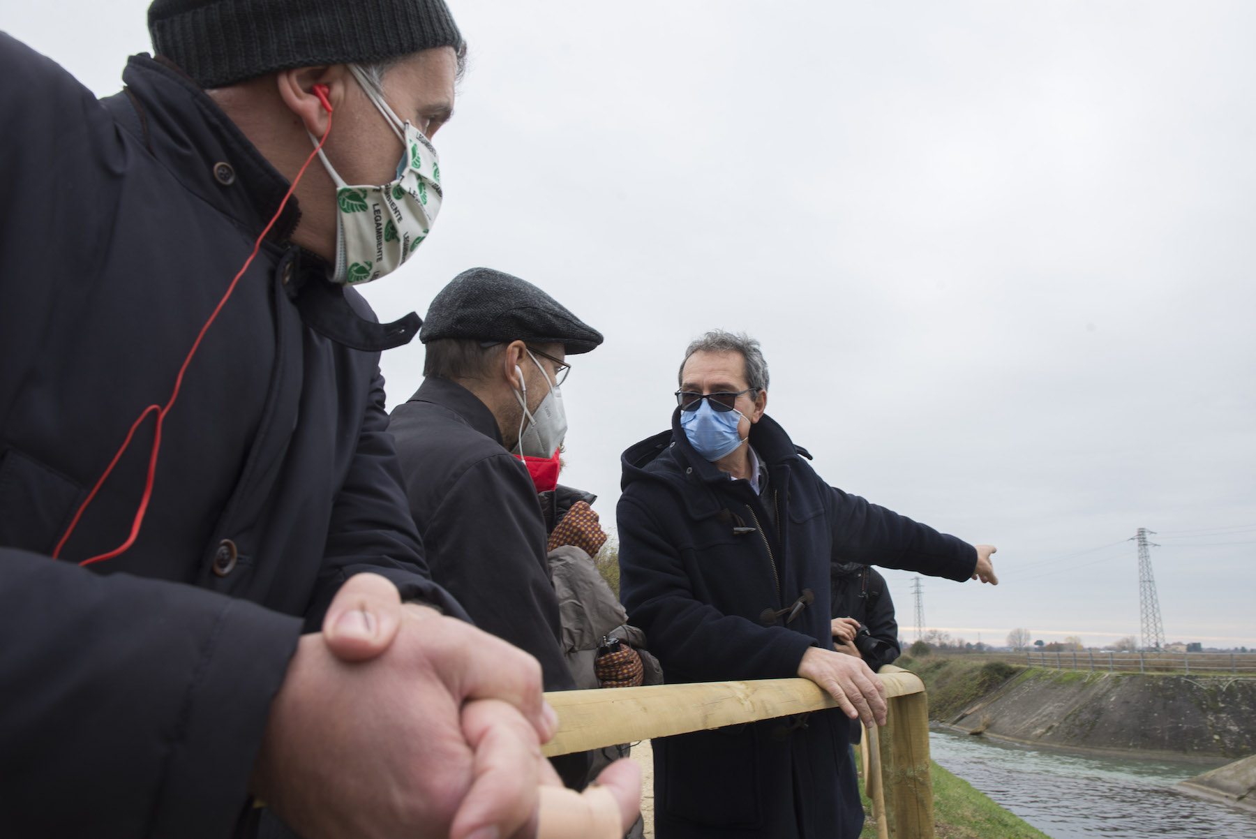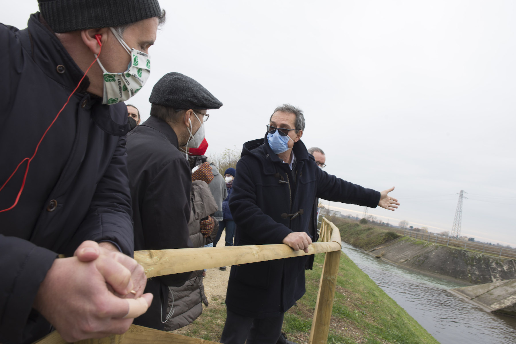 FOTO COVER di Federico Bevilacqua>> Vincenzo Cordiano e Piergiorgio Boscagin spiegano a Marcos Orellana la “vivificazione” [l’inganno semantico di una diluizione criminosa] del Tubone Arica con il Canale LEB, sul Fratta Gorzone. 4 dicembre 2021, Cologna Veneta.