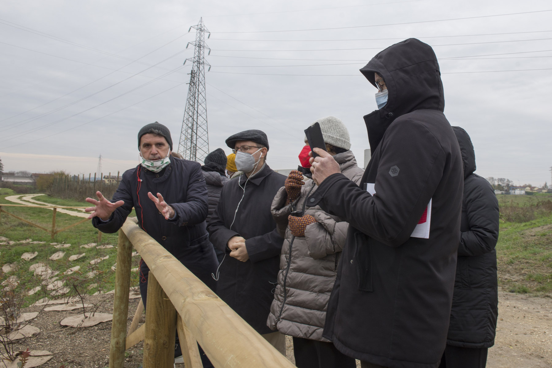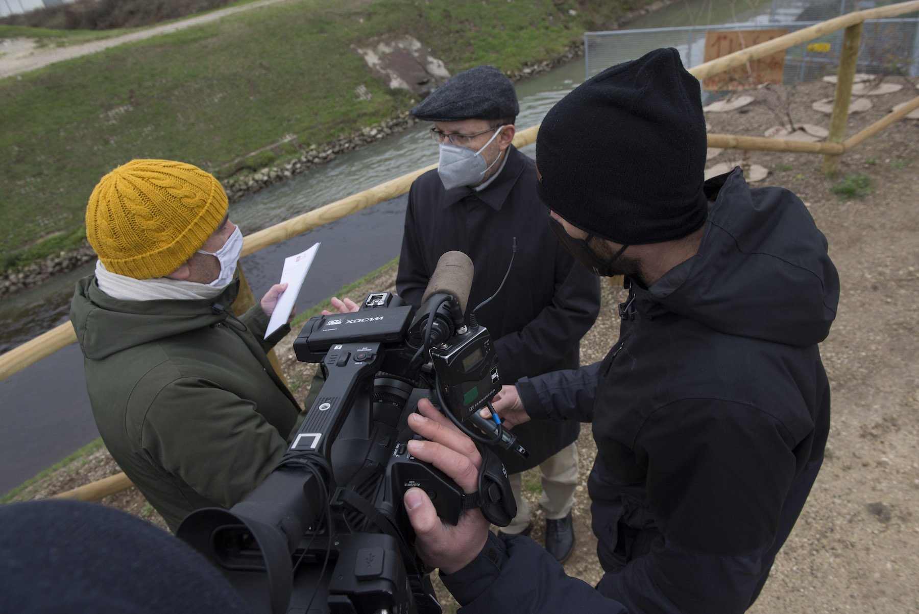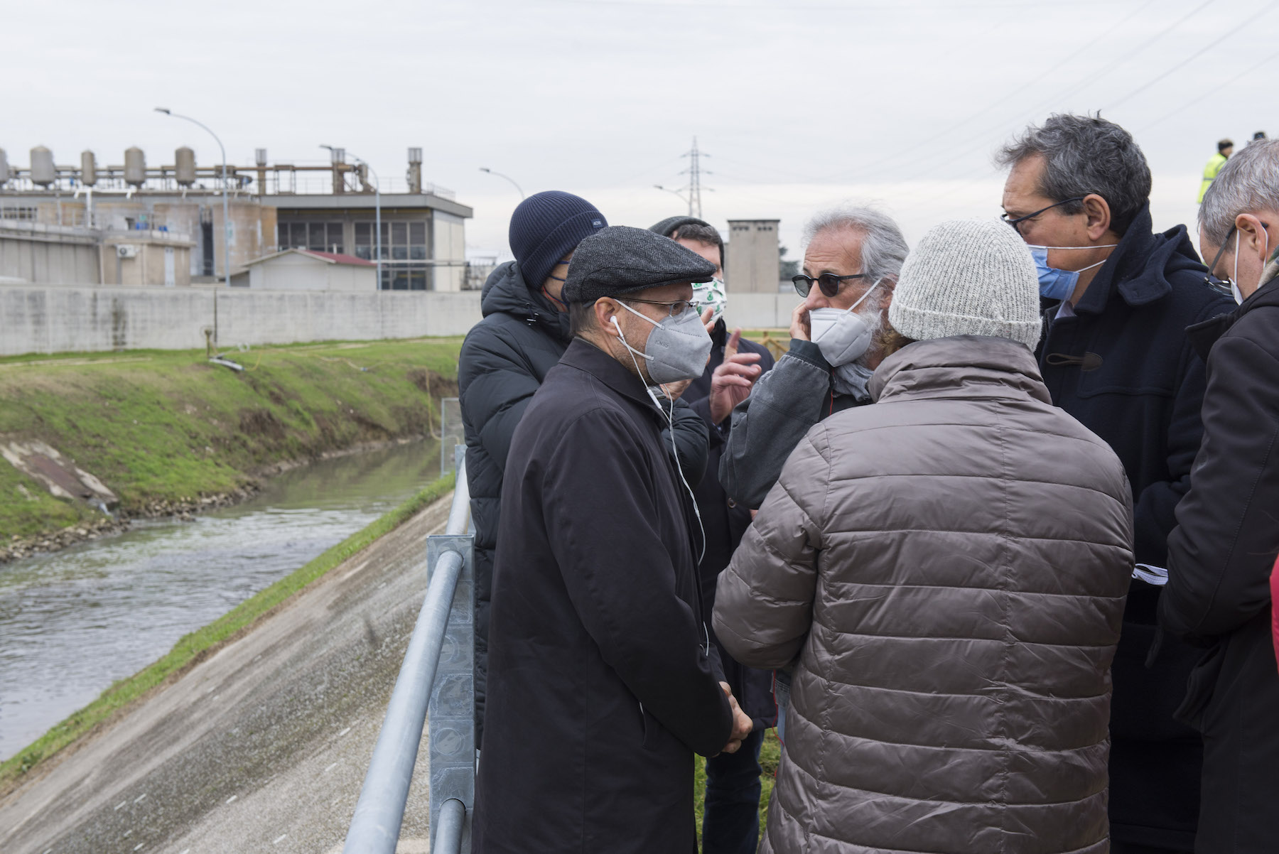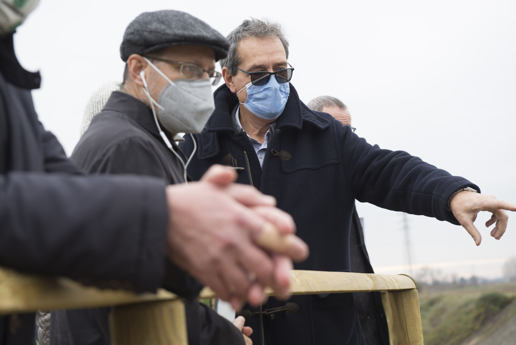 FOTO COVER di Federico Bevilacqua>> Vincenzo Cordiano e Piergiorgio Boscagin spiegano a Marcos Orellana la “vivificazione” [l’inganno semantico di una diluizione criminosa] del Tubone Arica con il Canale LEB, sul Fratta Gorzone. 4 dicembre 2021, Cologna Veneta.