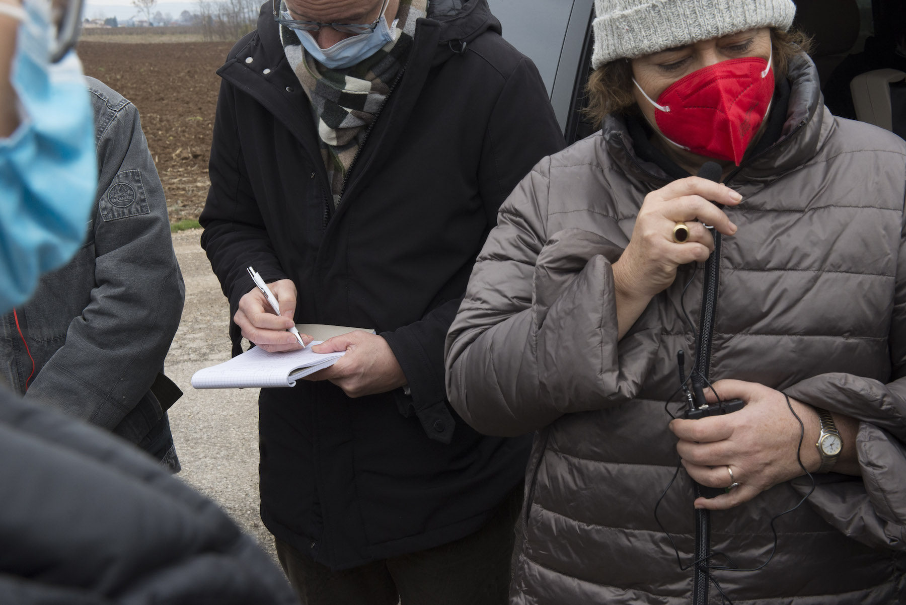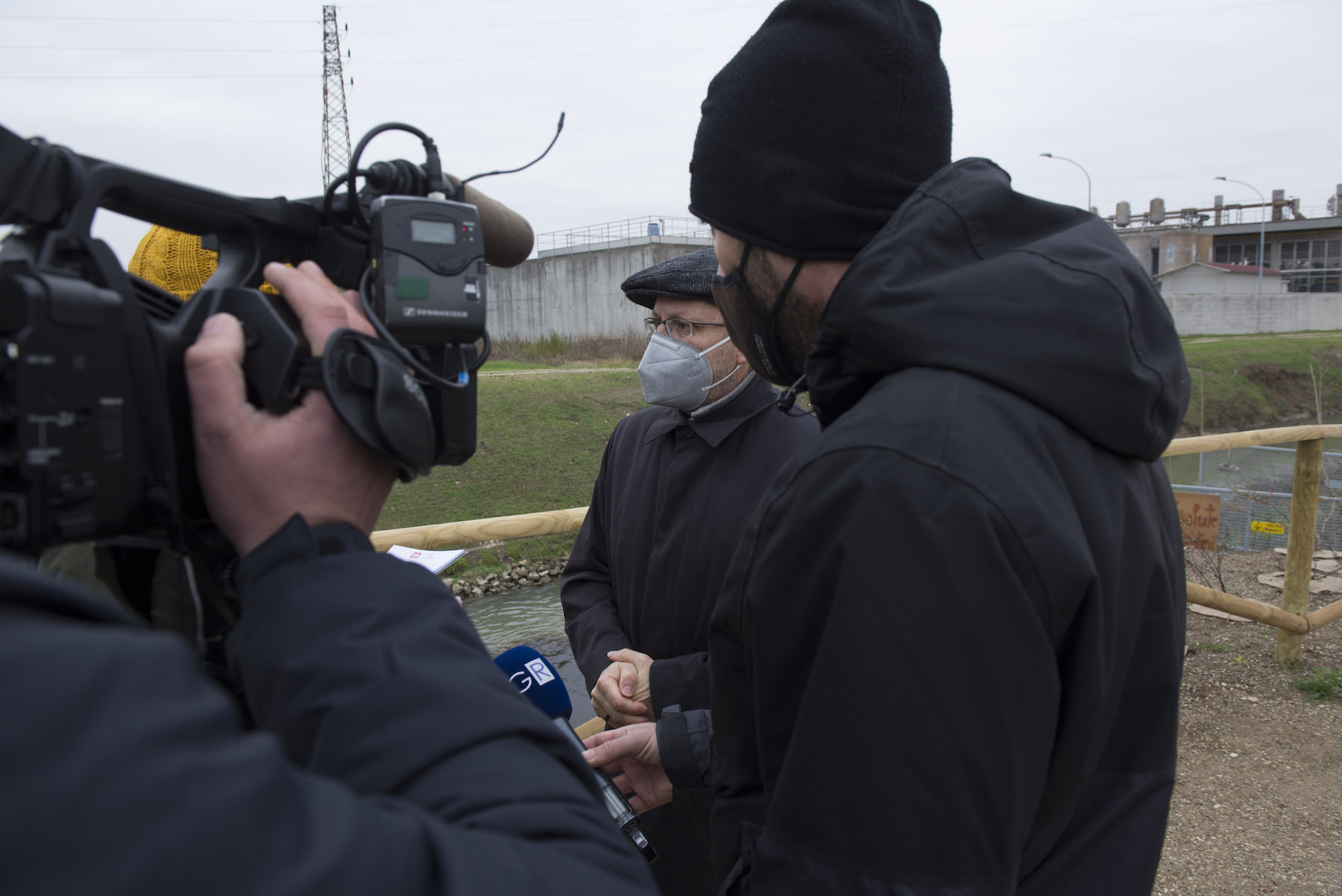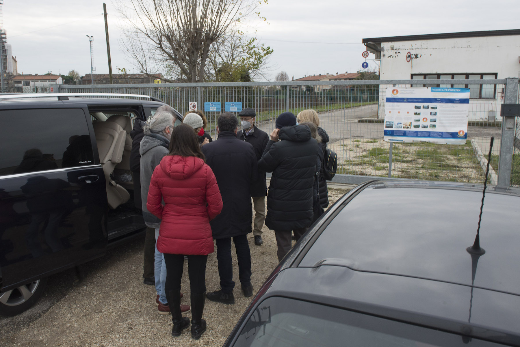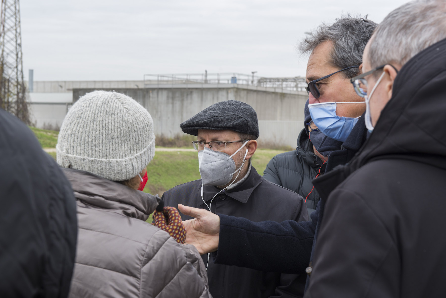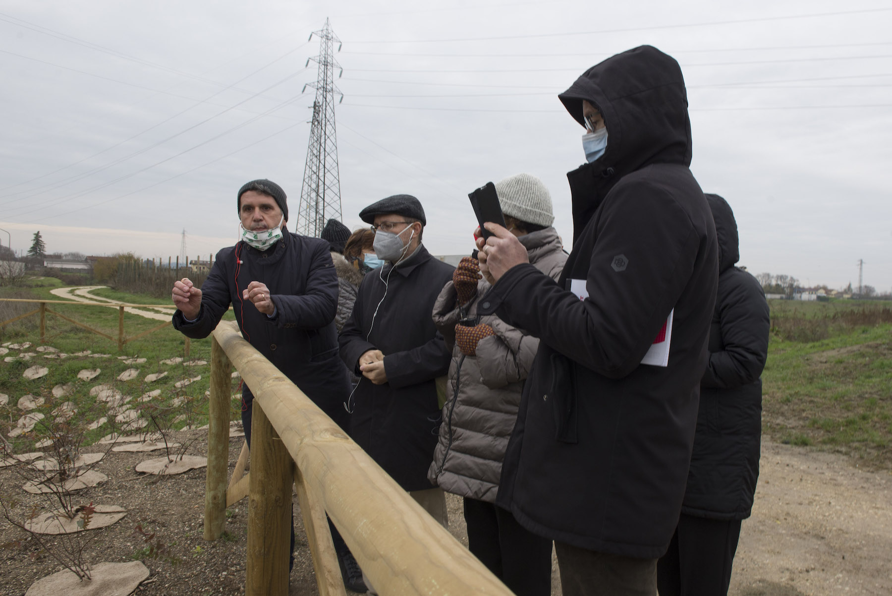 FOTO COVER di Federico Bevilacqua>> Vincenzo Cordiano e Piergiorgio Boscagin spiegano a Marcos Orellana la “vivificazione” [l’inganno semantico di una diluizione criminosa] del Tubone Arica con il Canale LEB, sul Fratta Gorzone. 4 dicembre 2021, Cologna Veneta.