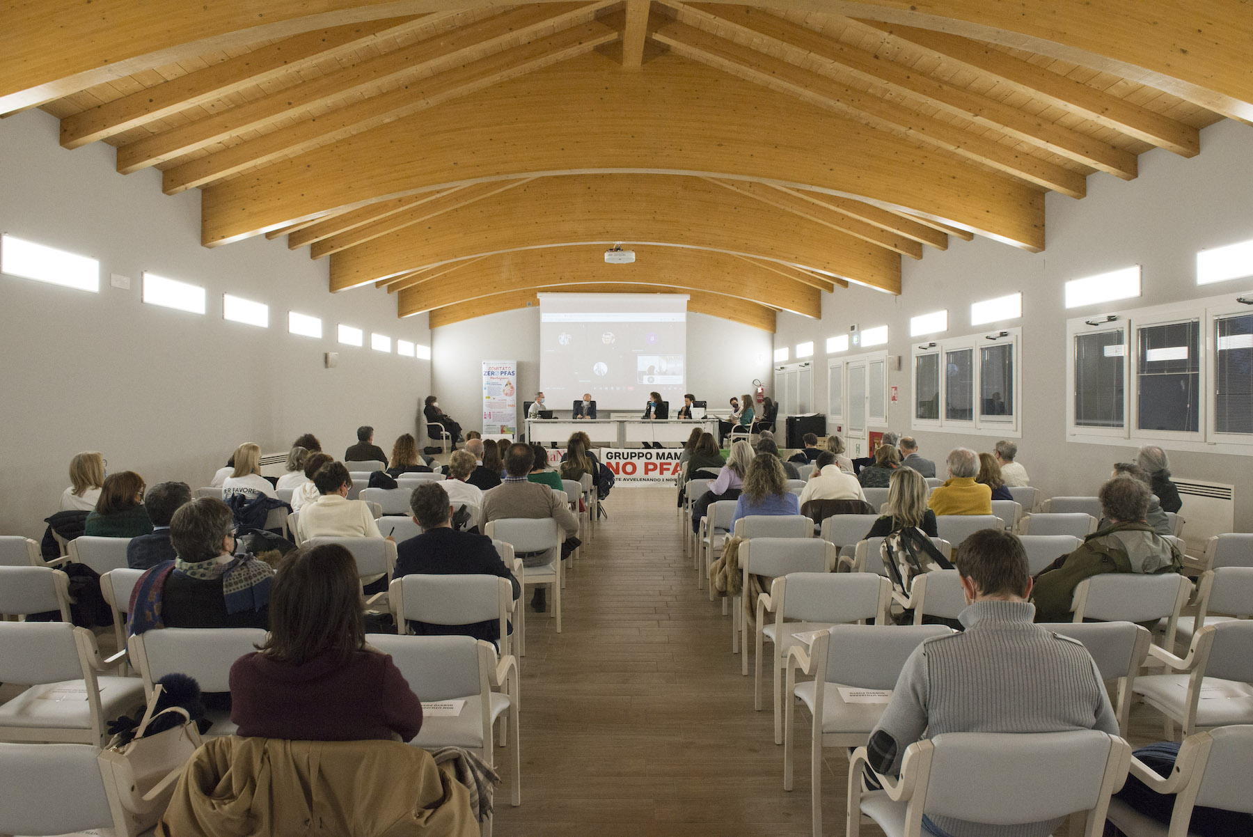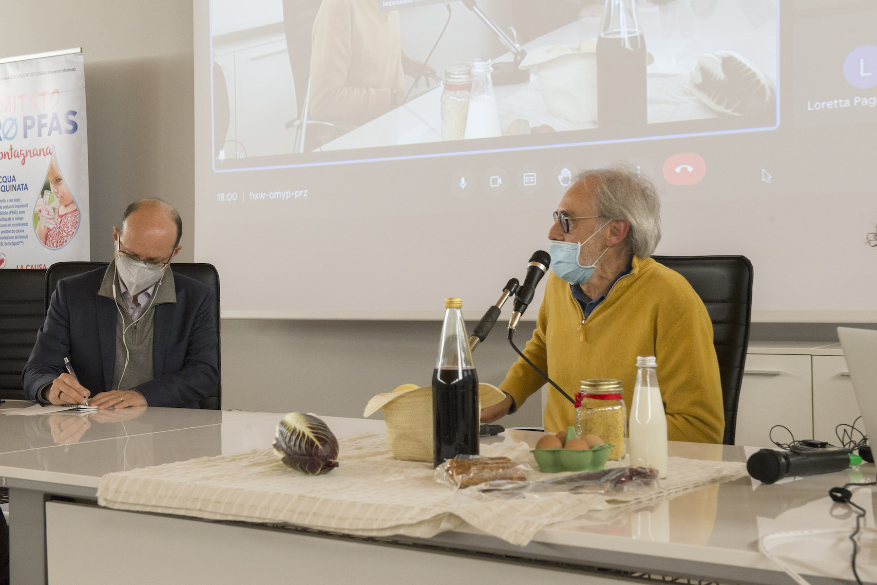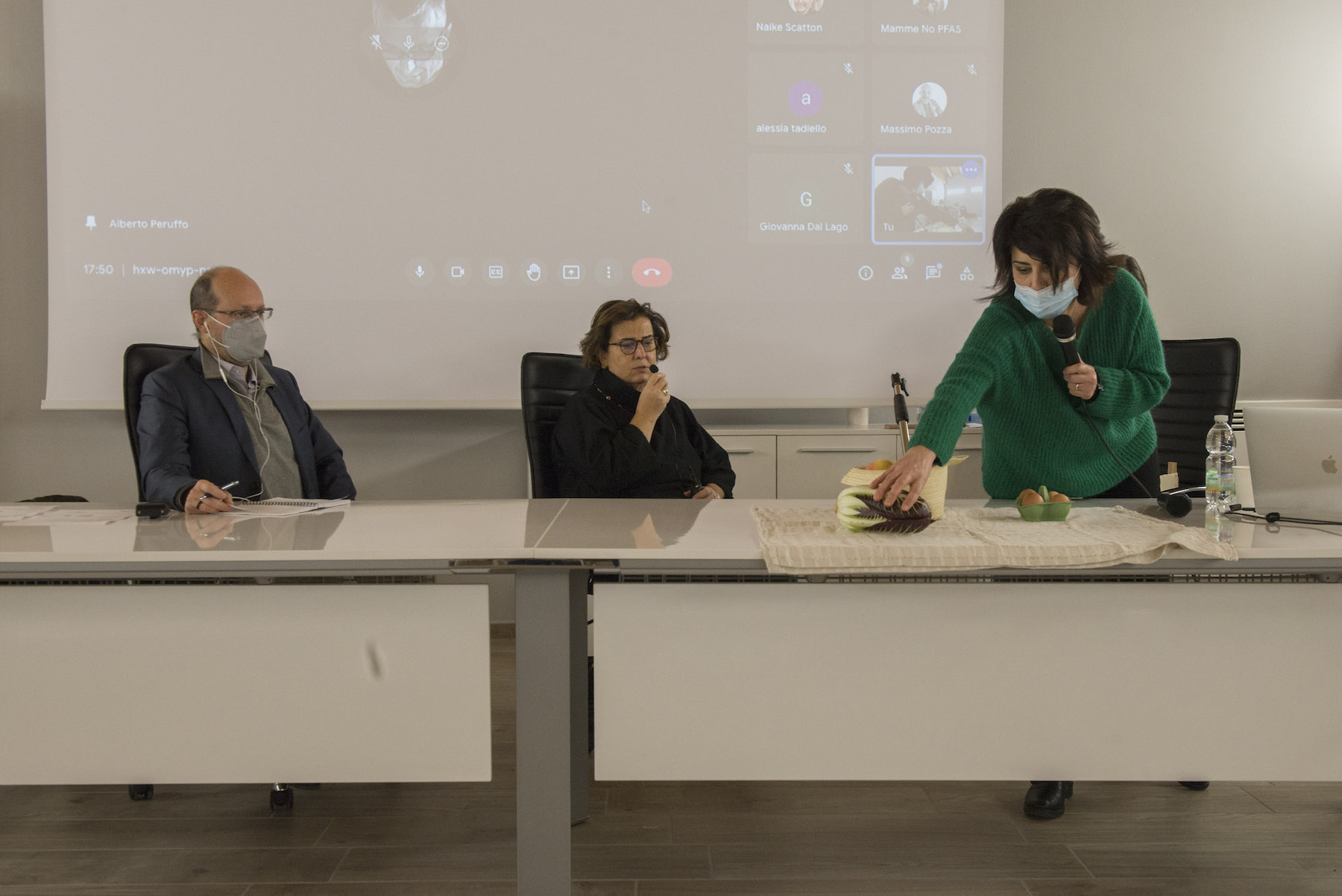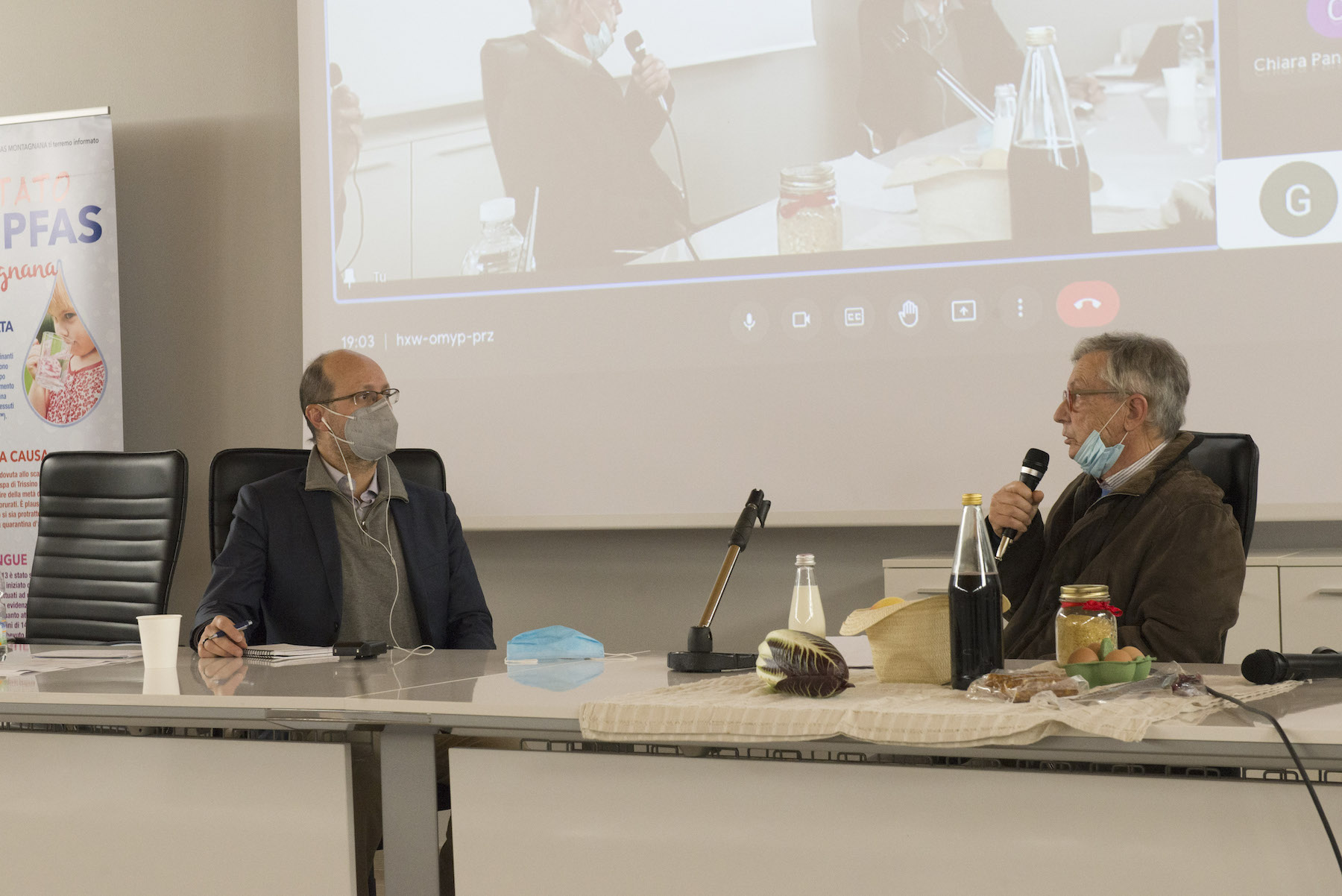 Infine, ricordiamo la chiusura in remoto del regista della Missione ONU, Alberto Peruffo, che dalla sede operativa di PFAS.land – la Libreria La Casa di Giovanni – causa quarantena Covid del figlio – ha ricordato all’assemblea questo punto fondamentale: «Il concetto di corresponsabilità. Sottolineo che un crimine ambientale di così vaste proporzioni può accadere solo se i tre gradi della catena di responsabilità sono fortemente connessi: 1. CHI PRODUCE (la Miteni); 2. CHI PERMETTE (gli enti di permesso: Comune, Provincia e Regione); 3. CHI CONTROLLA (gli enti e le agenzie di controllo: Regione: Genio Civile, Arpav, Spisal, Ulss). Solo questi tre elementi “collusi” insieme possono creare uno dei più grandi inquinamenti della storia recente».