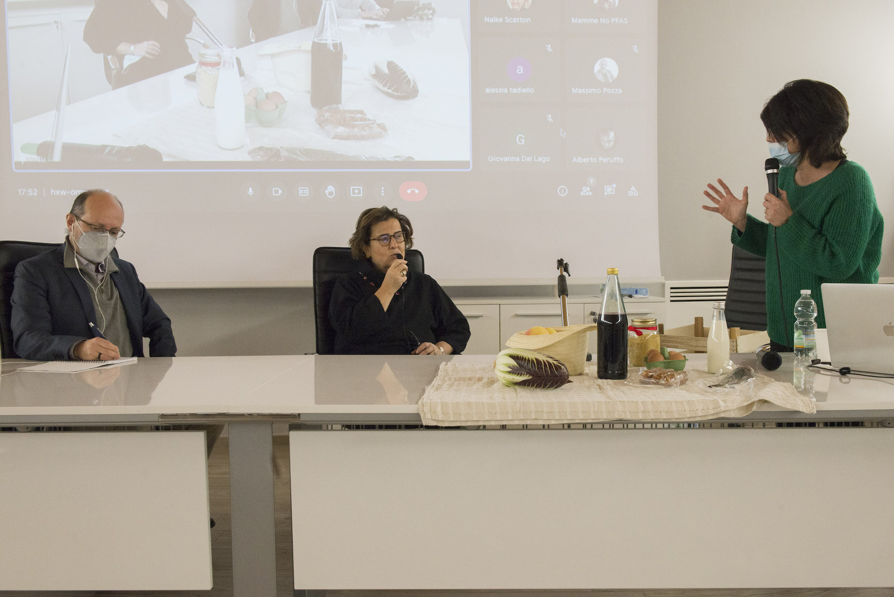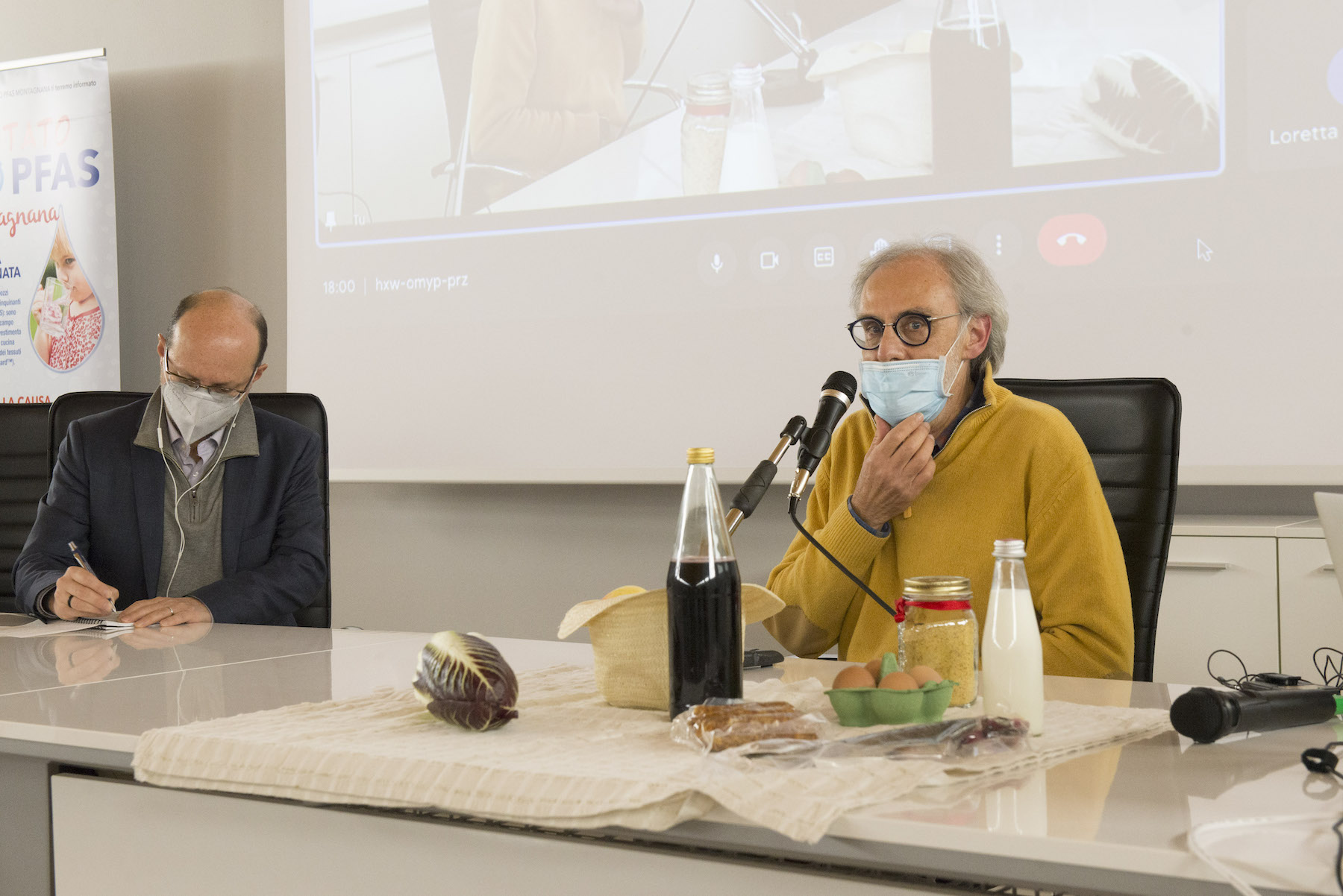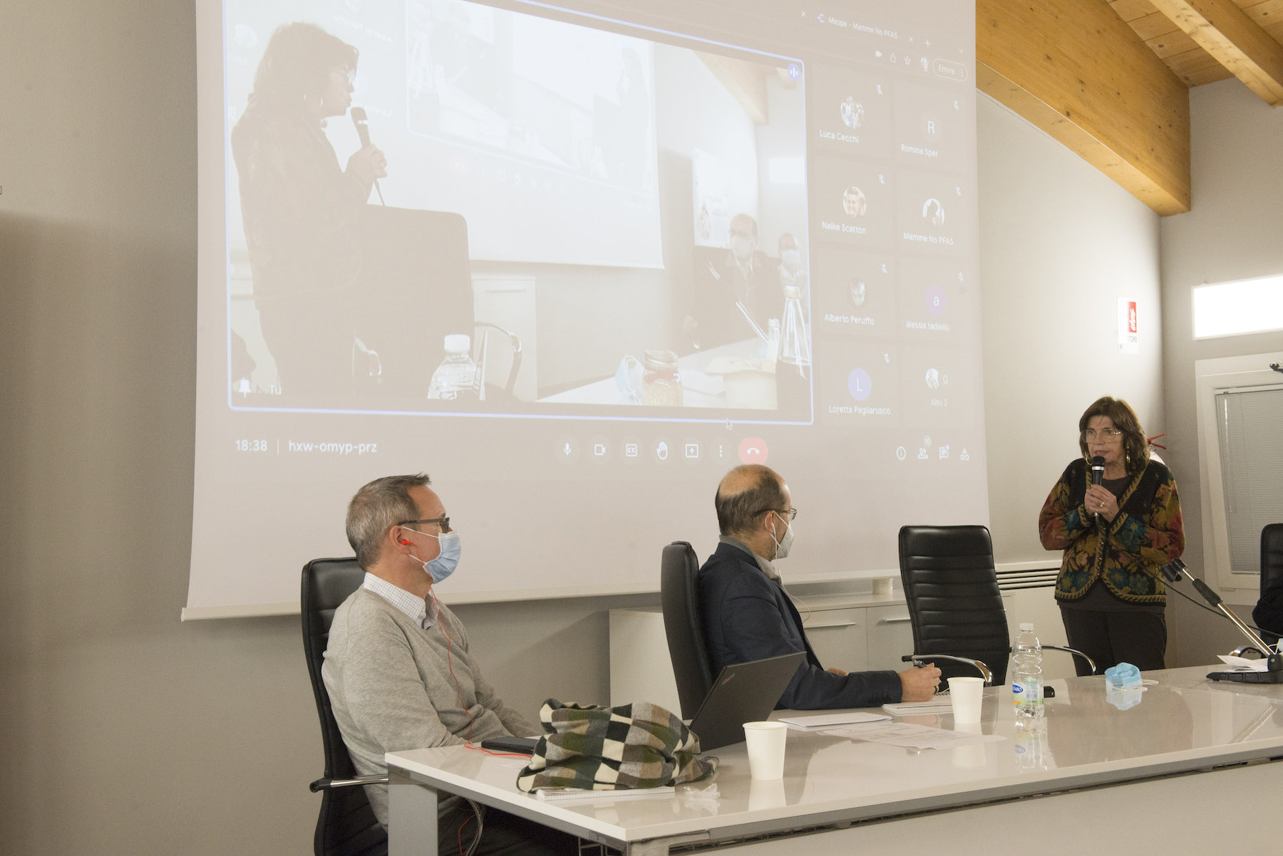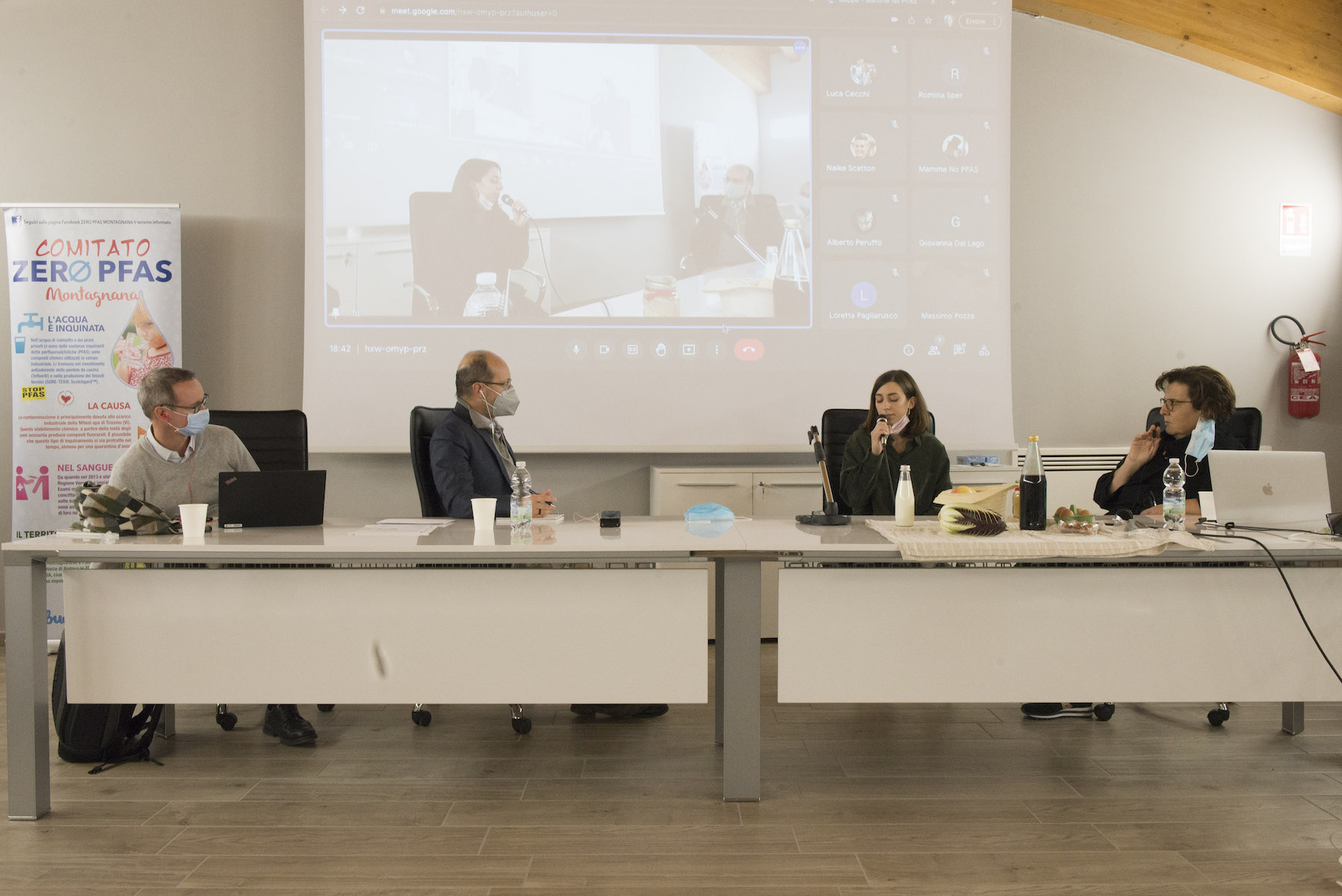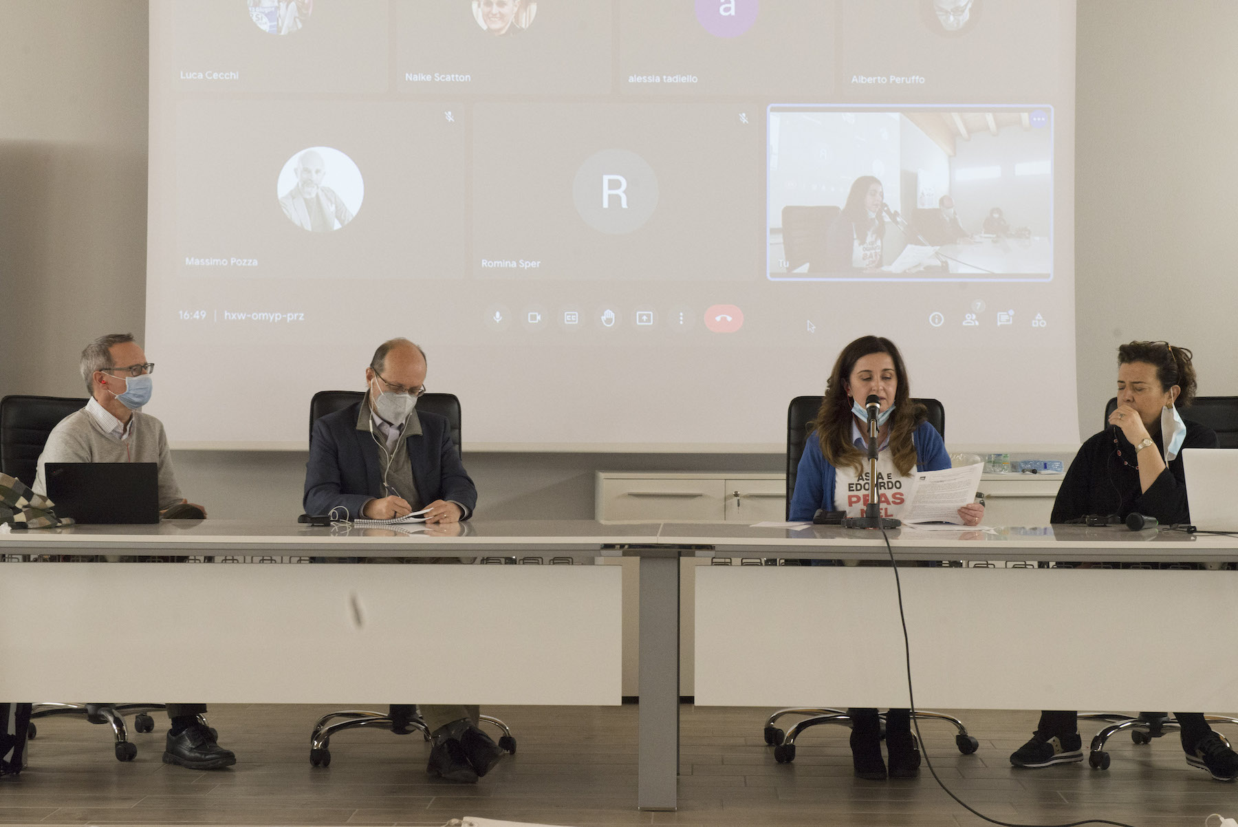 Infine, ricordiamo la chiusura in remoto del regista della Missione ONU, Alberto Peruffo, che dalla sede operativa di PFAS.land – la Libreria La Casa di Giovanni – causa quarantena Covid del figlio – ha ricordato all’assemblea questo punto fondamentale: «Il concetto di corresponsabilità. Sottolineo che un crimine ambientale di così vaste proporzioni può accadere solo se i tre gradi della catena di responsabilità sono fortemente connessi: 1. CHI PRODUCE (la Miteni); 2. CHI PERMETTE (gli enti di permesso: Comune, Provincia e Regione); 3. CHI CONTROLLA (gli enti e le agenzie di controllo: Regione: Genio Civile, Arpav, Spisal, Ulss). Solo questi tre elementi “collusi” insieme possono creare uno dei più grandi inquinamenti della storia recente».
