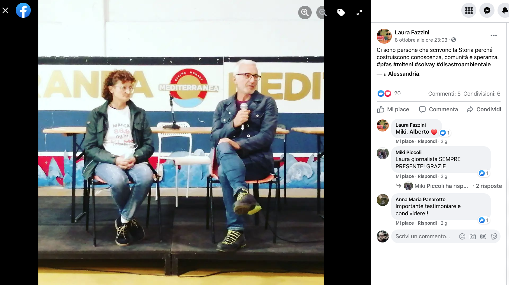 Infine, ricordiamo la chiusura in remoto del regista della Missione ONU, Alberto Peruffo, che dalla sede operativa di PFAS.land – la Libreria La Casa di Giovanni – causa quarantena Covid del figlio – ha ricordato all’assemblea questo punto fondamentale: «Il concetto di corresponsabilità. Sottolineo che un crimine ambientale di così vaste proporzioni può accadere solo se i tre gradi della catena di responsabilità sono fortemente connessi: 1. CHI PRODUCE (la Miteni); 2. CHI PERMETTE (gli enti di permesso: Comune, Provincia e Regione); 3. CHI CONTROLLA (gli enti e le agenzie di controllo: Regione: Genio Civile, Arpav, Spisal, Ulss). Solo questi tre elementi “collusi” insieme possono creare uno dei più grandi inquinamenti della storia recente».