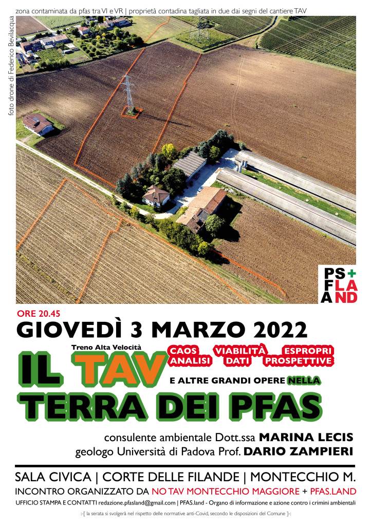 Il passaggio dell’Alta Velocità nel territorio veneto si interseca con l’inquinamento da PFAS. Molti dei comuni attraversati dal TAV sono allo stesso tempo contaminati dalle sostanze perfluoroalchiliche, prodotte dalla Miteni di Trissino fino al 2018 (anno della sua chiusura) e tuttora contaminanti, non essendo stata fatta ancora la bonifica del sito dell’azienda e volendoci decenni per il loro “smaltimento naturale” in falda. Si parla di un secolo.