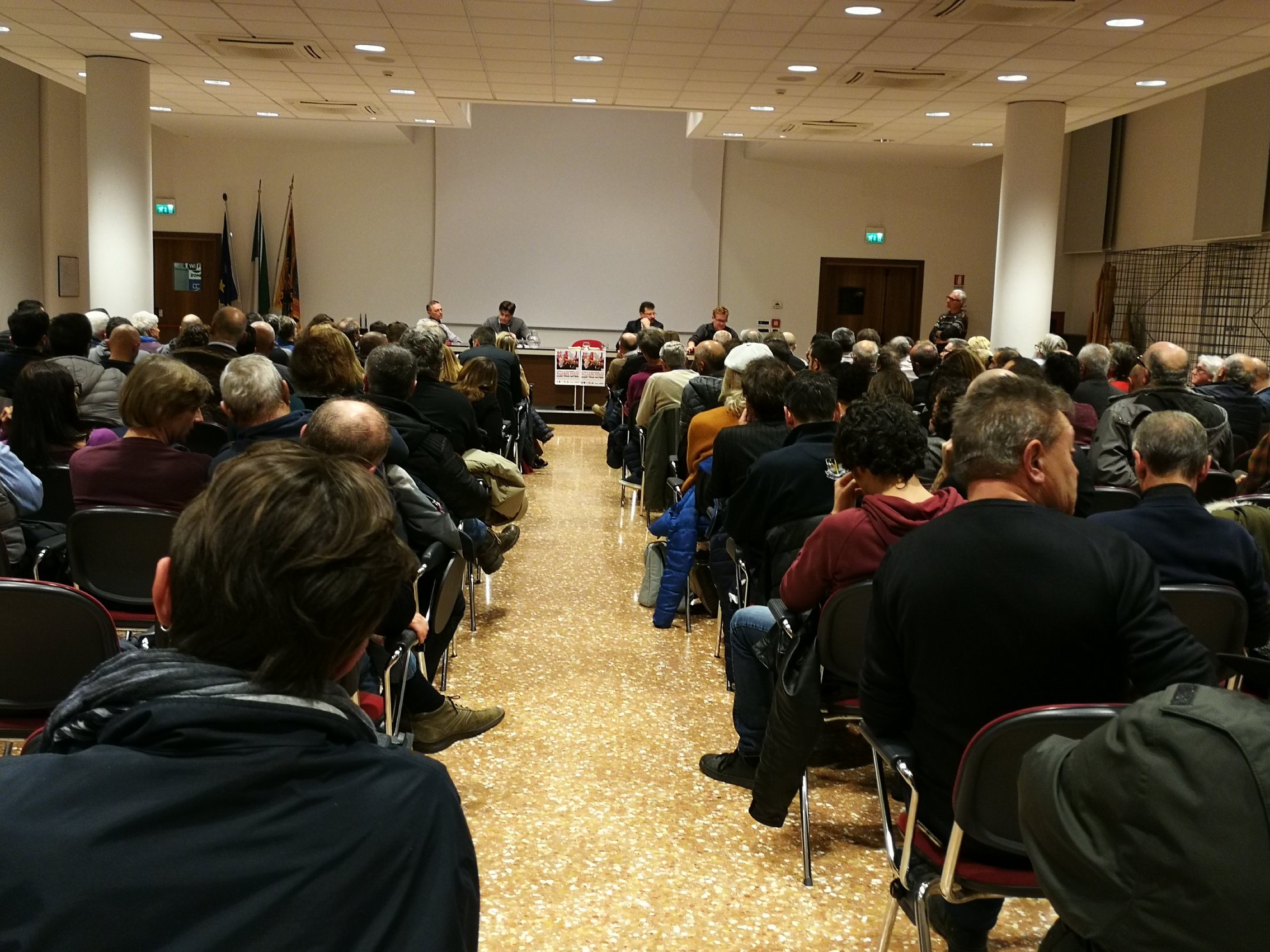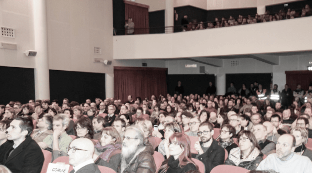 Terzo punto dirimente della questione Pfas per le sorti della fabbrica: il 17 febbraio 2017 una insostenibile Lectio Magistralis negazionista convocata da Miteni, con il beneplacito della Commissione Ambiente di Montecchio Maggiore guidata da Maurizio Scalabrin, con il parere favorevole del Presidente del Consiglio Comunale, viene scientificamente esautorata dal movimento nascente contro i Pfas e fatta letteralmente saltare: improprietà del luogo – Sede della Confindustria di Montecchio – dei relatori – tossicologo Angelo Moretto (consulente ILVA) – e delle procedure antidemocratiche, sono gli argomenti portati dagli attivisti con i propri corpi davanti alla sede prescelta. La conferenza si voleva infatti tenere a porte chiuse, con invitati solo i sindaci e gli assessori competenti di tutti i comuni coinvolti. Il tema avrebbe dovuto essere: la non-nocività dei Pfas e i nuovi mercati dei perfluoroalchilici. La conferenza presieduta dall’AD di Miteni Antonio Nardone e dal tossicologo Moretto andrà praticamente deserta, con un centinaio di attivisti fuori e generale assenza degli invitati, allertati da un “dispaccio digitale” con gli argomenti citati. La narrazione negazionista, pseudoscientifica, sui Pfas, sarà respinta per sempre.