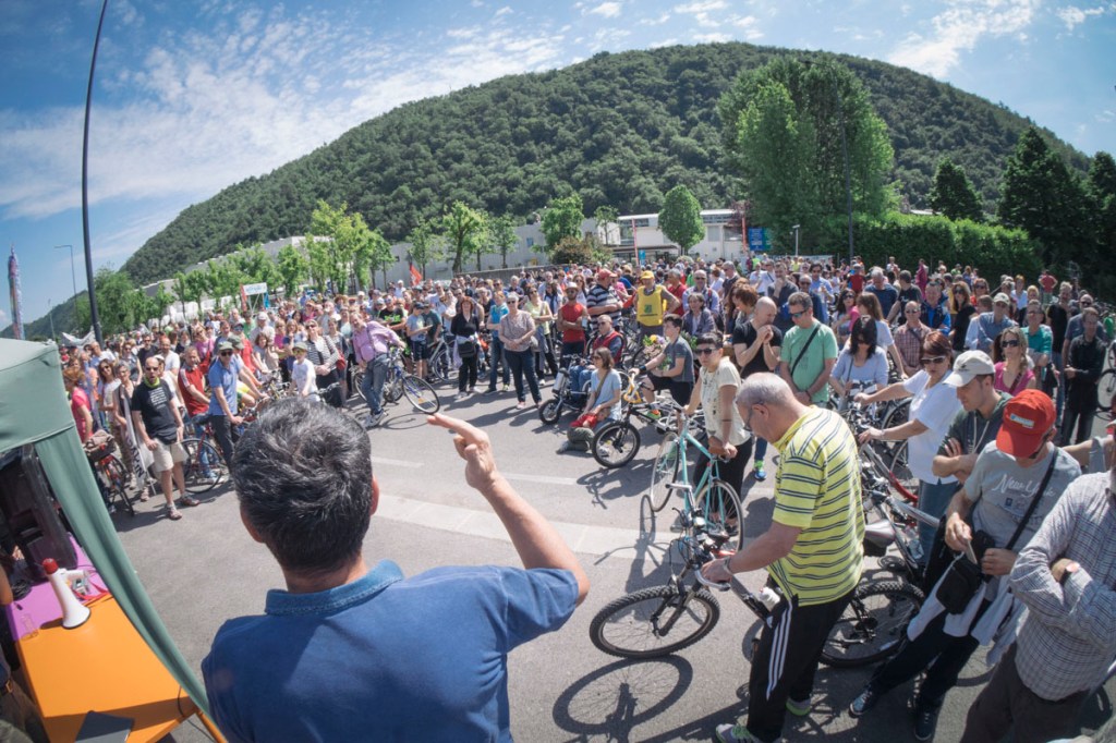 L’8 maggio 2016 sarà il secondo punto dirimente della caduta di Miteni: con la Marcia dei Pfiori, più di 500 biciclette e altre 500 persone confluiscono davanti alla Miteni. Genitori e cittadini dei diversi paesi contaminati si trovano per la prima volta insieme e marciano fino davanti alla fabbrica con i propri bambini, piantando dei fiori simbolici – contaminati, con la p davanti – nei confini dello stabilimento. Pur tenendo un profilo basso lontano dalla stampa scandalistica, lo straordinario “esercito” di biciclette che occuperà in movimento la “statale” 246, per due chilometri di lunghezza, romperà gli argini dell’informazione “controllata”: molte testate riporteranno le foto dei cittadini, i video della marcia e le reazioni della Miteni, con le maestranze fuori dai cancelli. Il tutto aiuterà a cementare relazioni che saranno la base per la futura grande mobilitazione permanente, ancora in atto. L’inizio di una vera e propria rivoluzione civile, scientifica, rigorosa, creativa, intersezionale. Nel Veneto iperproduttivo e dormiente. Che romperà la dinamica identitaria e politicizzata delle sigle-categorie e sposterà sul piano della prima politica il conflitto, con un grande messaggio simbolico, senza bisogno di striscioni, ma solo di fiori con la p davanti: in prima linea saranno tutti i cittadini, di qualsiasi colore, genere, pensiero e porteranno davanti alla fabbrica non tanto e solo la maternità ferita, la paternità, la genitorialità, ma la figliolanza contaminata: tutti siamo figli di questa terra contaminata. Anche chi non può diventare padre o madre, ma per forza di cose o caso nasce e vive qui.