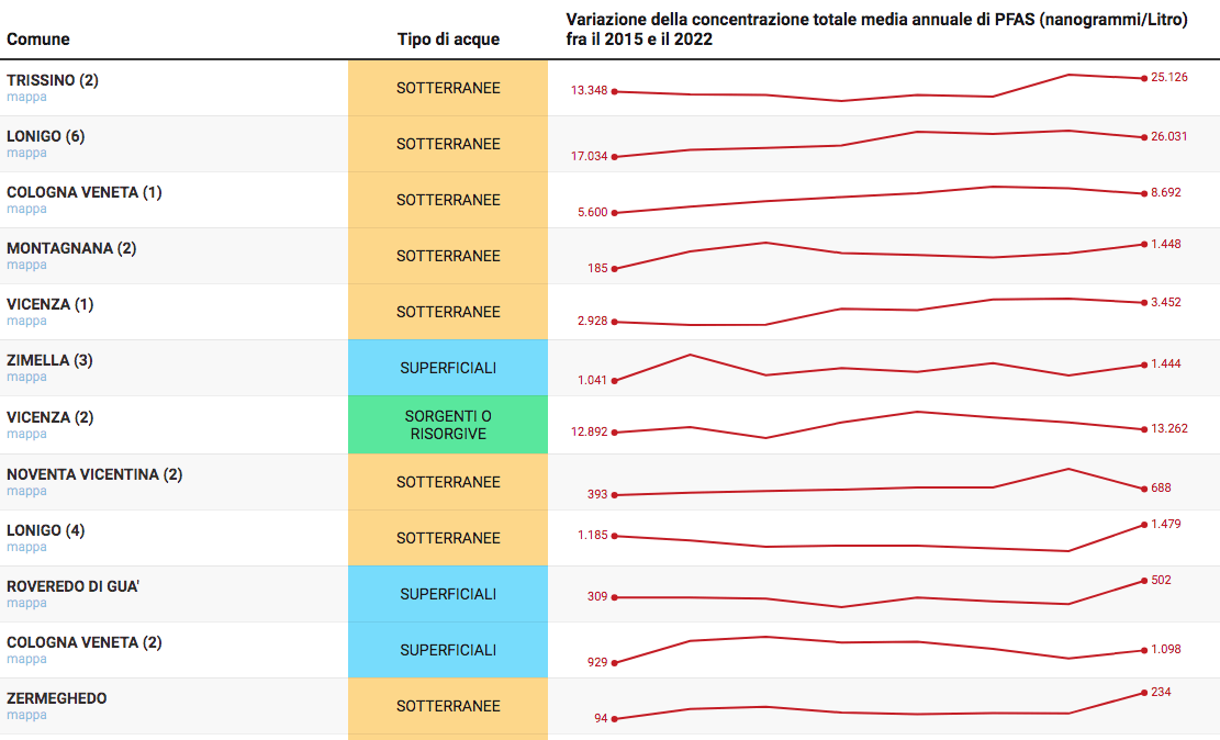 Buongiorno nell’articolo inviato forse c’è un refuso sul link che apre la *MAPPA 2 VALORI RECENTI PFAS VENETO **// FINO AL 2022* perché cliccandoci sopra rimanda sempre e solo alla mappa 1. Con l’occasione volevo ringraziarVi per l’ottimo lavoro di controinformazione svolto. Senza di Voi chissà quando avremmo saputo. Ancora grazie e saluti