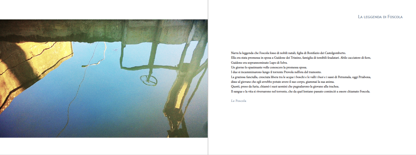 // La foto cover è una rielaborazione di un’immagine + opera tratta dal libro di Silvana Gaspari (foto scattata nel cantiere SPV di Castelgomberto prima dell’interramento nella Praderia, con scarichi a cielo aperto di inquinanti, quasi fosse una palude) + i colori dell’Alta Via dei Monteccchiani.