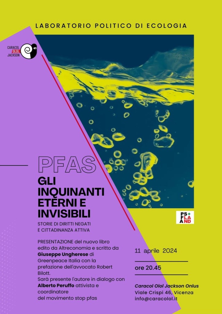 12 aprile – ALTE DI MONTECCHIO MAGGIORE – Sala Civica Alte – ore 20.45 >> https://altreconomia.it/eventi/presentazione-di-pfas-di-giuseppe-ungherese-a-alte-ceccato-montecchio-maggiore-vi/