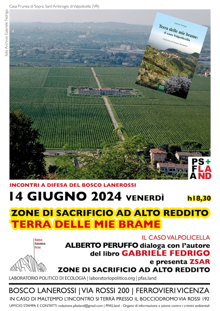 // La foto Cover – dedicata al “Governatore del Veneto”, la regione con la più grande contaminazione delle acque ad uso umano d’Europa – è presa dal sito di Cristina Guarda dall’articolo Non si accorge di essere Governatore del Veneto! – con l’aggiunta di un nostro incontro culturale: in questi giorni presentiamo una riflessione sul vino – la “teologia del vino” – con la presentazione del libro TERRA DELLE MIE BRAME. IL CASO VALPOLICELLA di Gabriele Fedrigo, in dialogo con Alberto Peruffo sulle ZONE DI SACRIFICIO AD ALTO REDDITO.